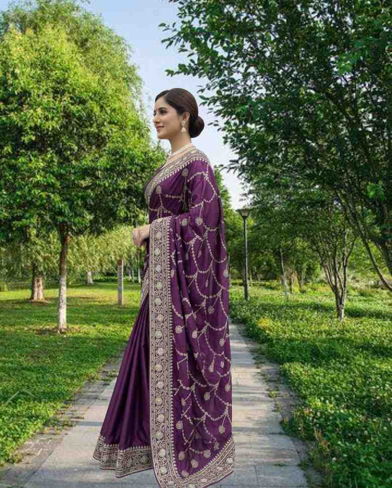 KD-573 Japan Satin Silk Saree, Sequenced Work