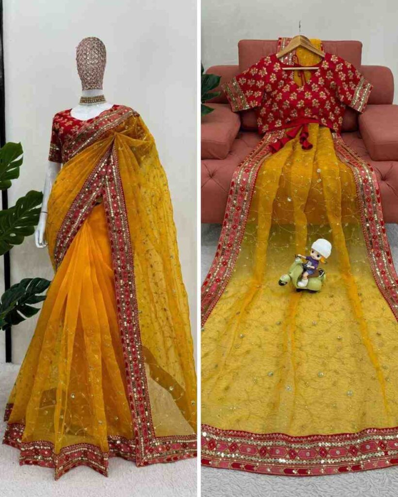 KD-577 Organza Silk Saree Collection Full Catalog Available at Wholesale Rate.