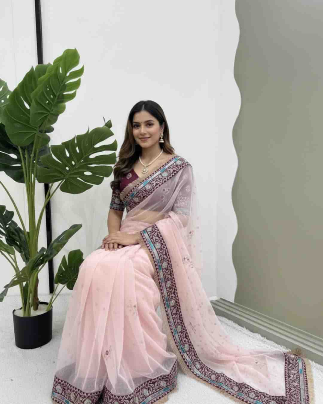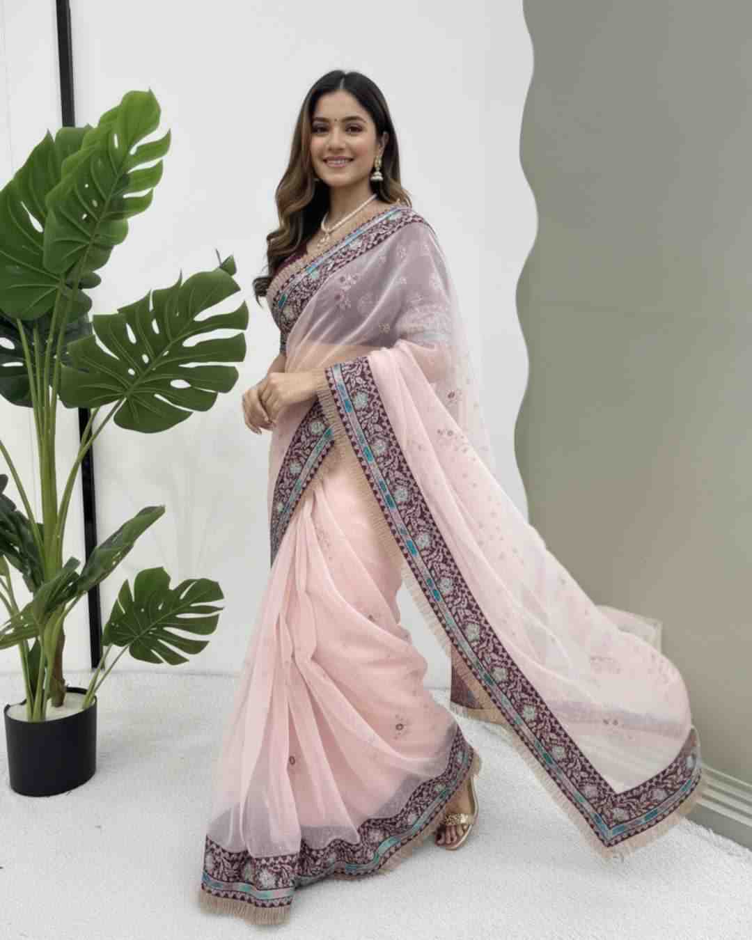 JD-593 Trendy Chinon Silk Palazzo with Embroidery