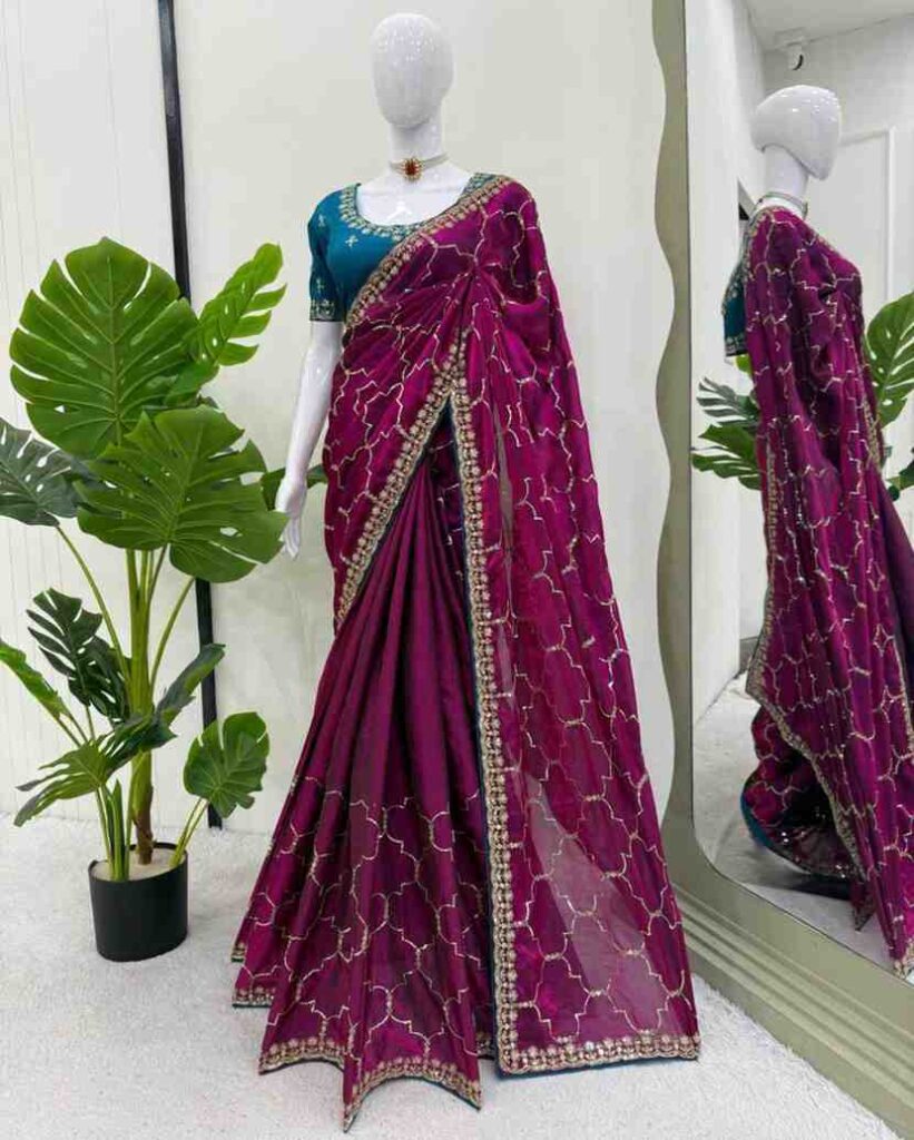 KD-435 Designer Satin Silk Saree With net un-stitched Blouse
