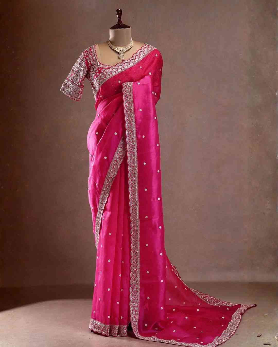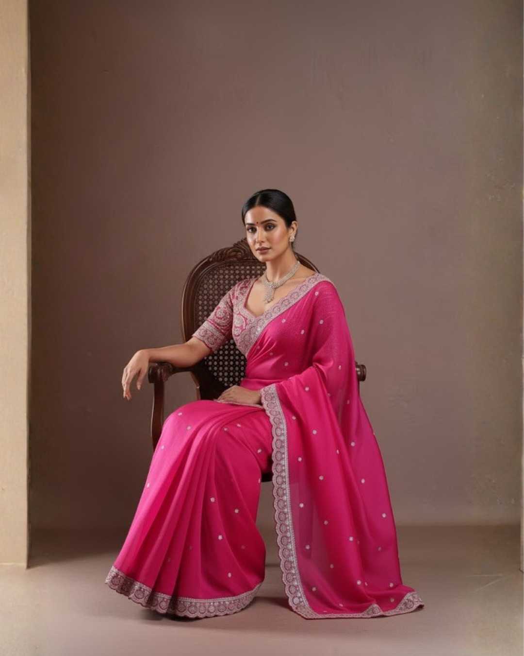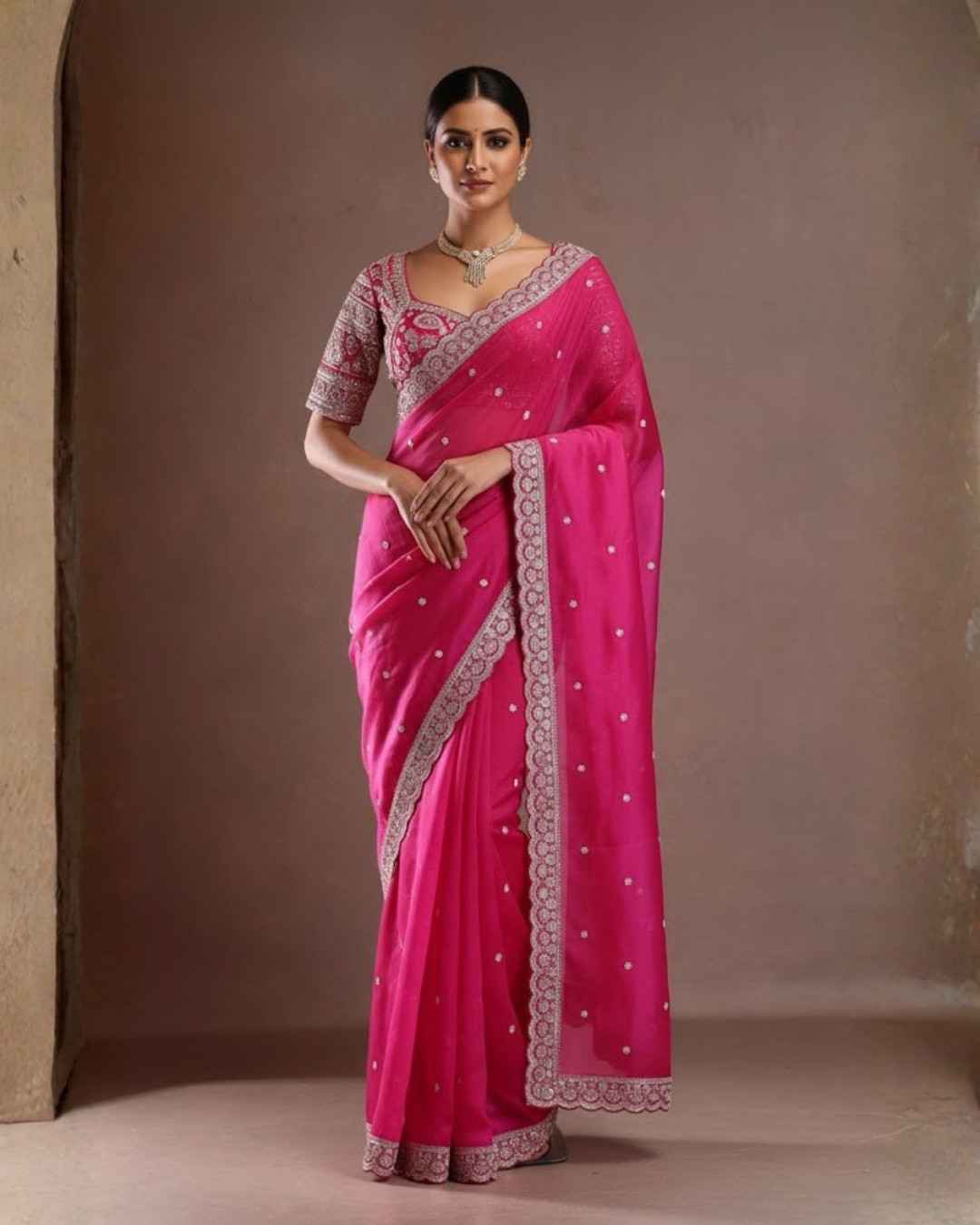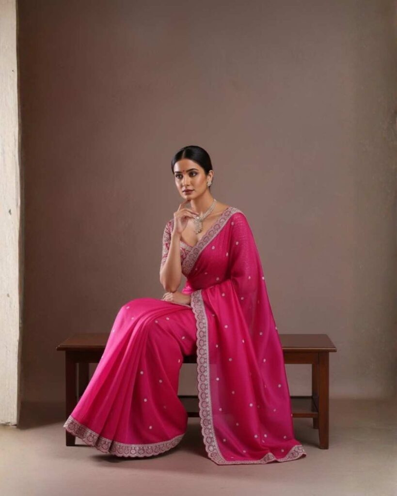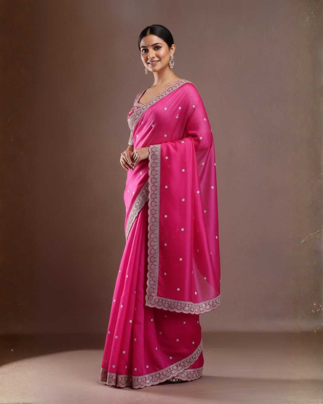KD-608 jimmy chu and Thread Work Saree With Un-Stitched Blouse