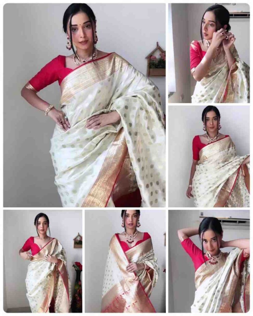 Fabric Design | Beautiful Rich pallu & Golden Weaving Work On All Over The Saree And Rich Weaving Rich Border Blouse Piece |