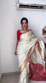 KP- 5016 Lichi Silk Saree with Jacquard Border Un-Stitched Blouse