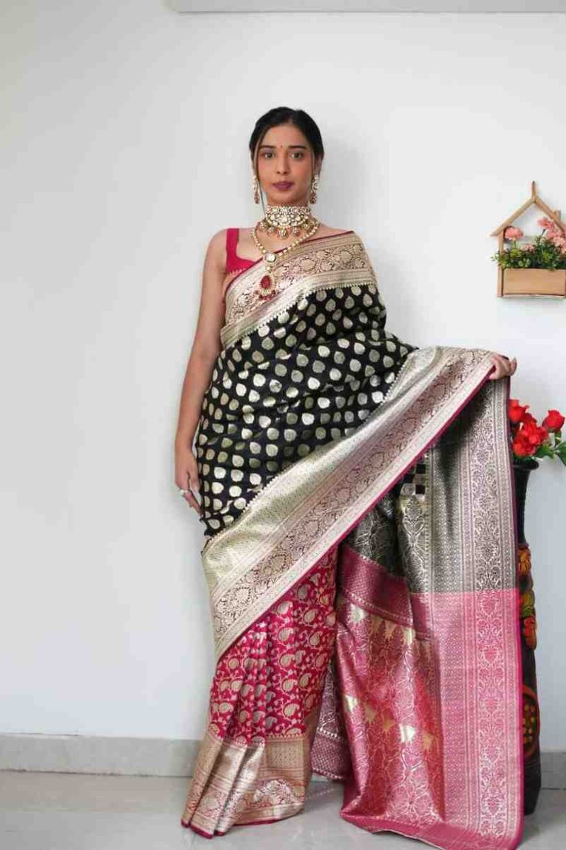 Fabric Design | Beautiful Rich pallu & Golden Weaving Work On All Over The Saree And Rich Weaving Rich Border Blouse Piece |