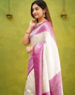 KP- 5056 Soft Lilan Slab Saree Weaving & Un-Stitched Blouse