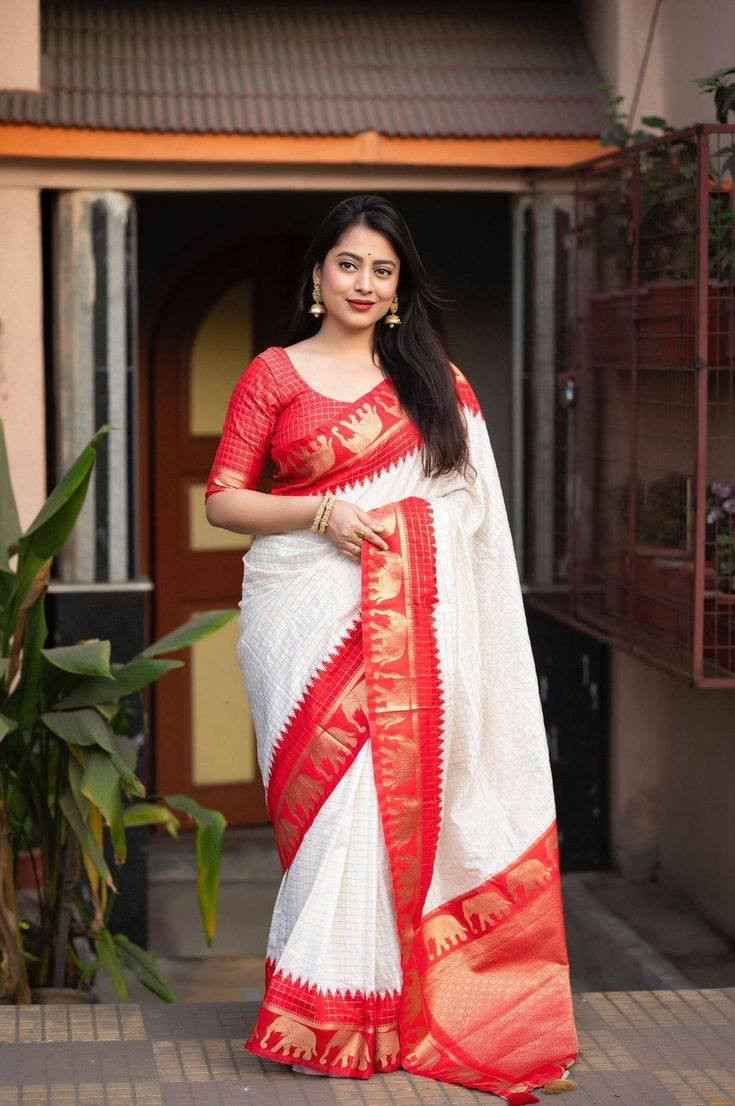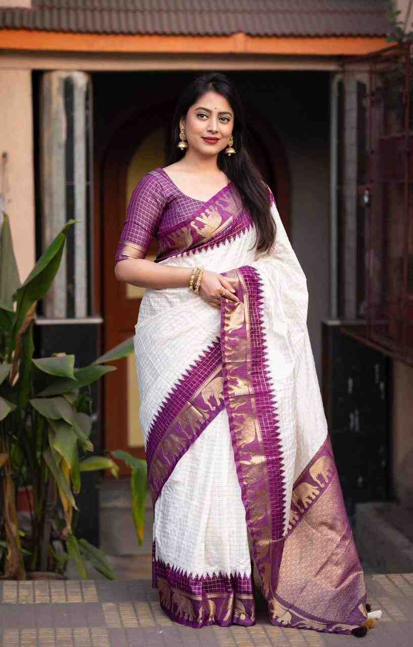 Fabric Design | Beautiful Rich pallu & Jacquard Work On All Over The Saree And Jacquard Border Blouse Piece |