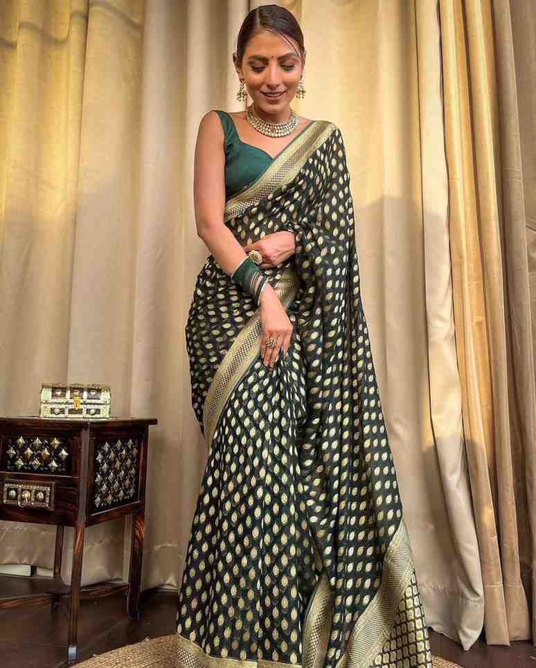 KP-5079 Soft Lichi Silk Saree With Un-Stitched Blouse
