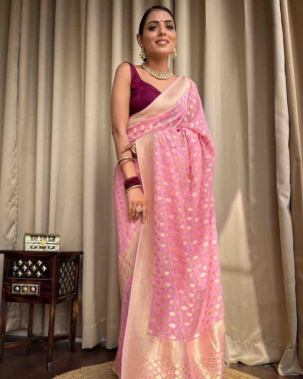 | Fabric Design | Beautiful Rich pallu & Jacquard Work On All Over The Saree And Jacquard Border Blouse Piece |