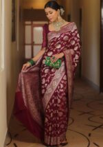 KP-6010 Soft Lichi Silk Saree with Jacquard Blouse ( Un- Stitched)