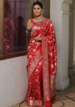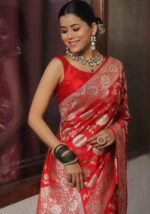 KP-6007 Soft Lichi Silk Saree with Jacquard Blouse ( Un- Stitched)
