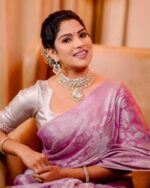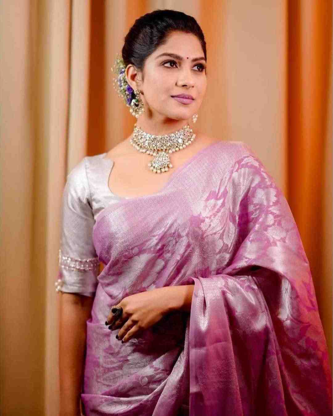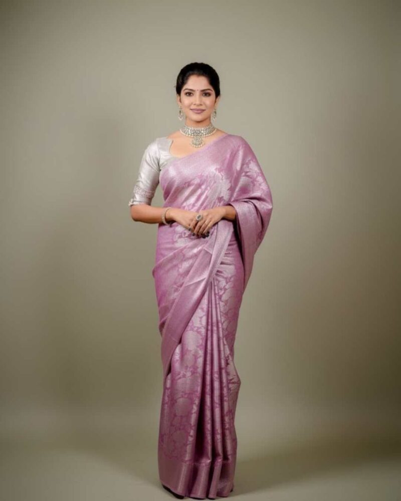 KP-6046 Soft Lichi Silk Saree with Jacquard Blouse ( Un- Stitched)