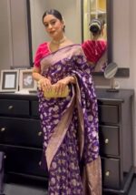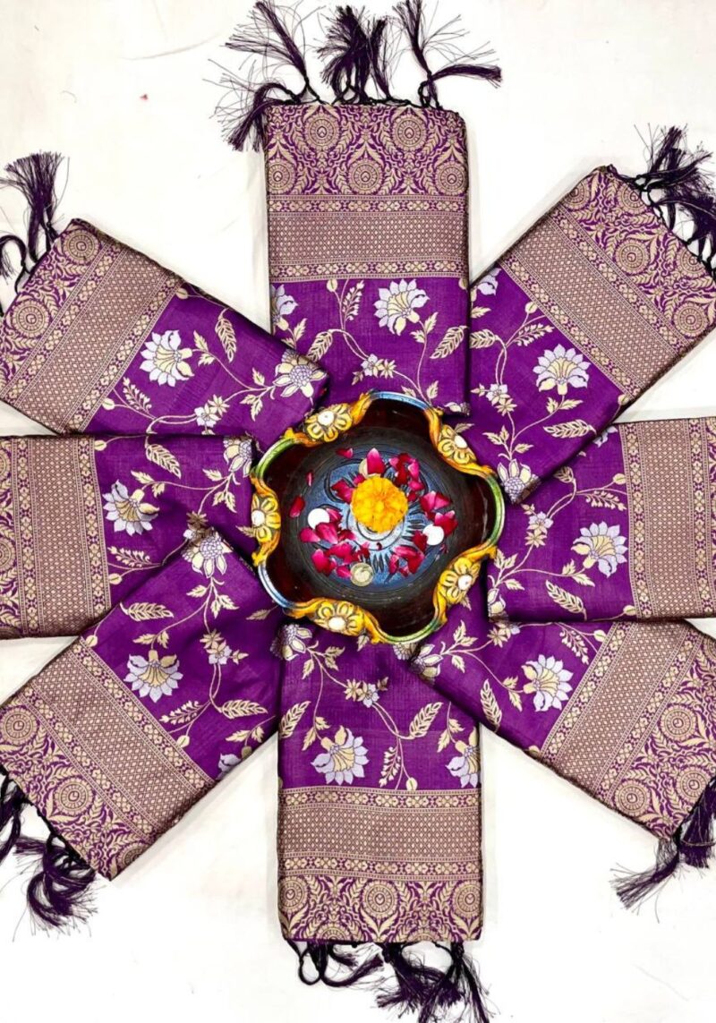 KP-6048 Jacquard Lichi Silk Saree with Brocade Un- Stitched Blouse