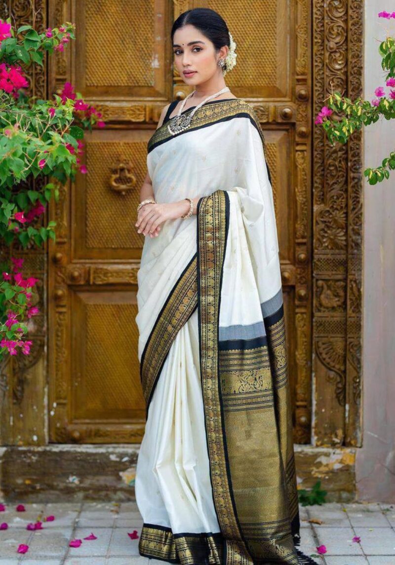 KP-5085 Soft Lichi Silk Saree with Jacquard Blouse ( Un- Stitched)
