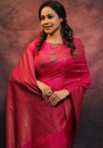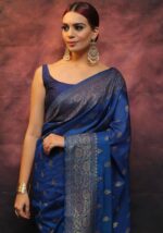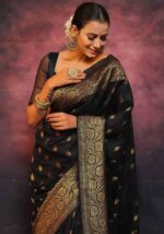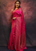 KP-5077 Soft Lichi Silk Saree with Jacquard Blouse ( Un- Stitched)