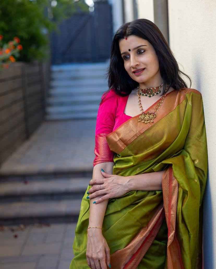 KP-6015 Beautiful Soft lichi Silk Saree With Un-Stitched Blouse