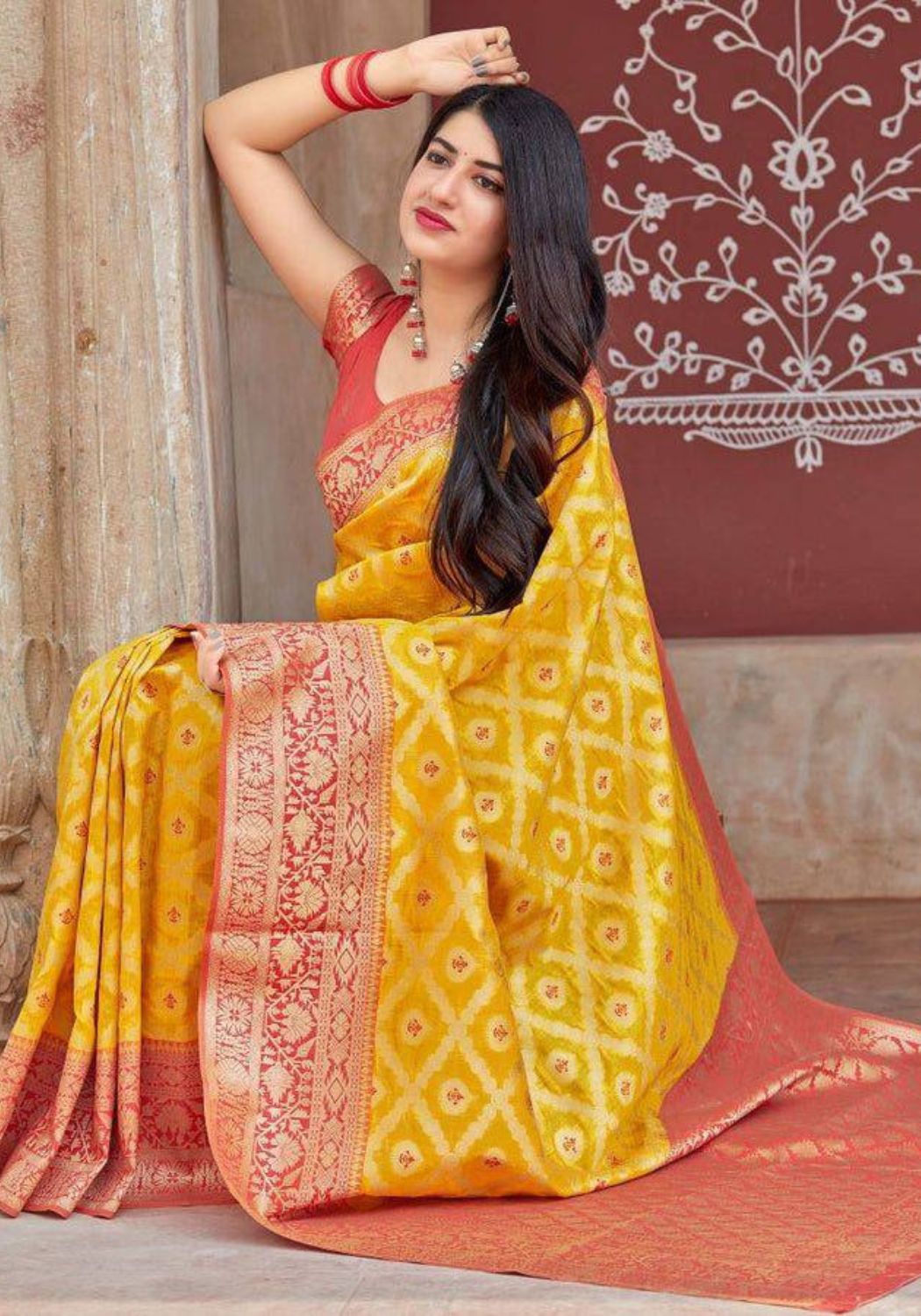 KP-6042 Soft Lichi Silk Saree with Jacquard Blouse ( Un- Stitched)