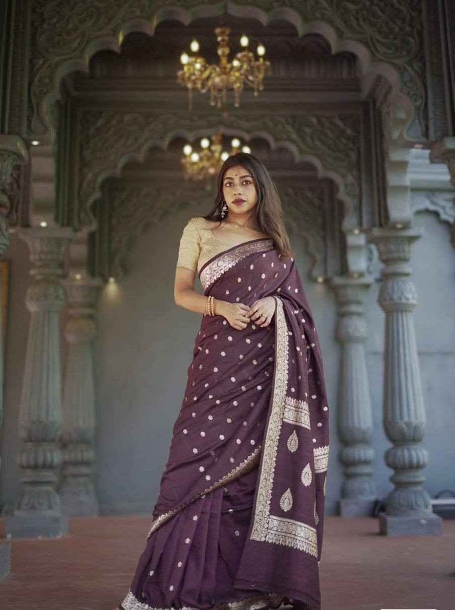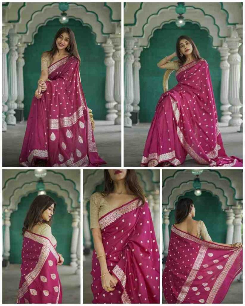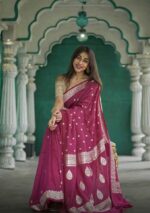 KP-6019 Soft Lichi Silk Saree With Un - Stitched Blouse