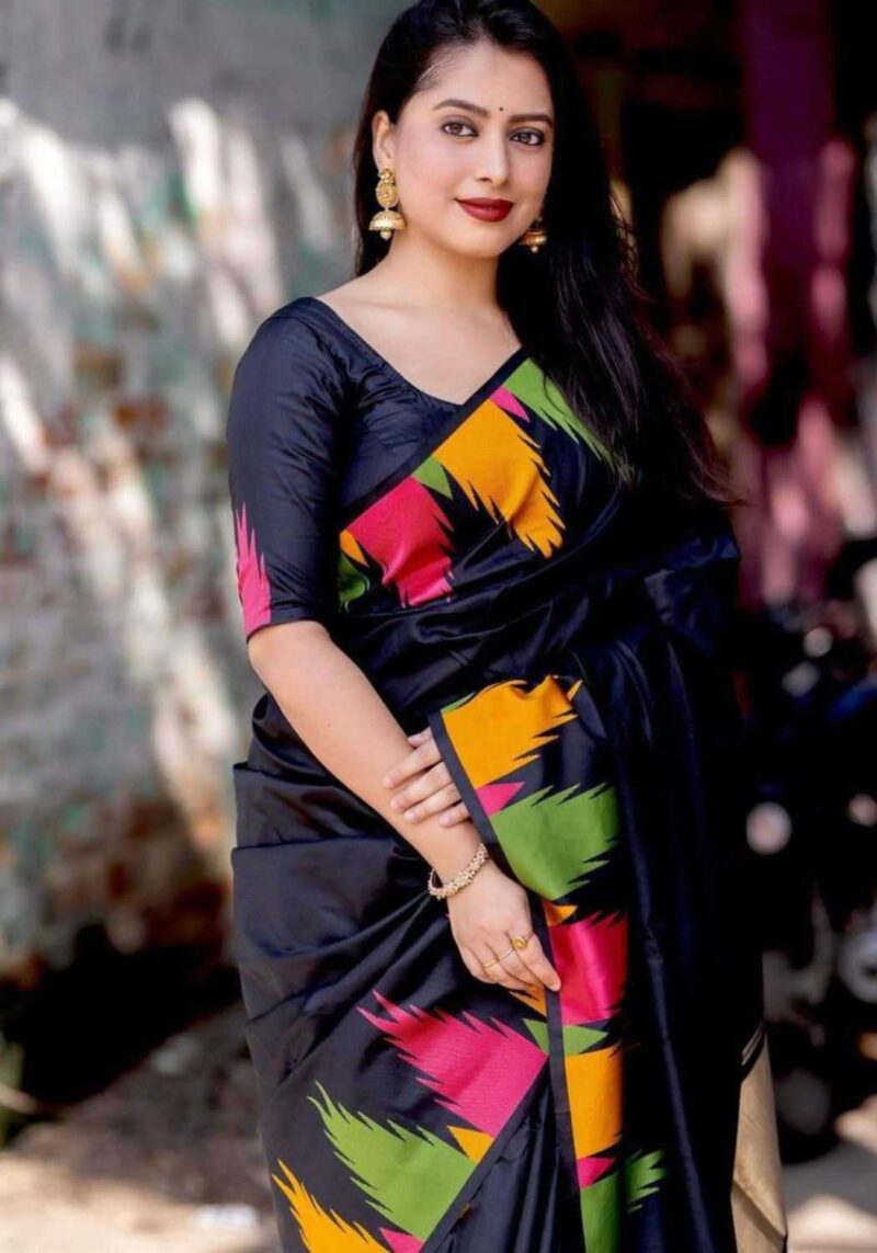 KP-6042 Soft Lichi Silk Saree with Jacquard Blouse ( Un- Stitched)