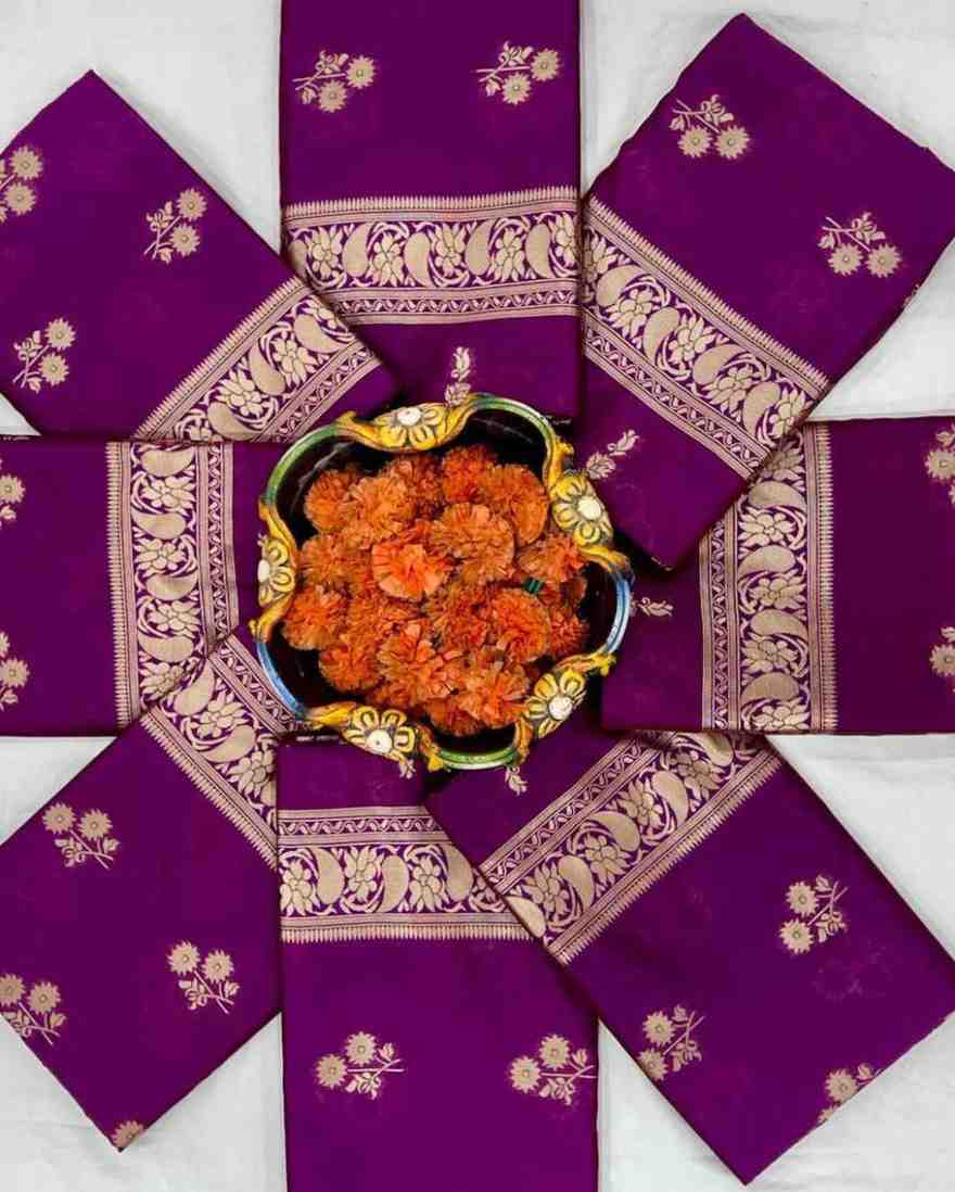 KP-6042 Soft Lichi Silk Saree with Jacquard Blouse ( Un- Stitched)