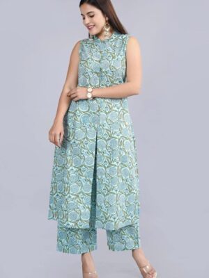 RD-2928 Sleeveless Kurti with Cotton Plazo Set
