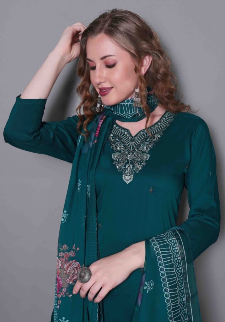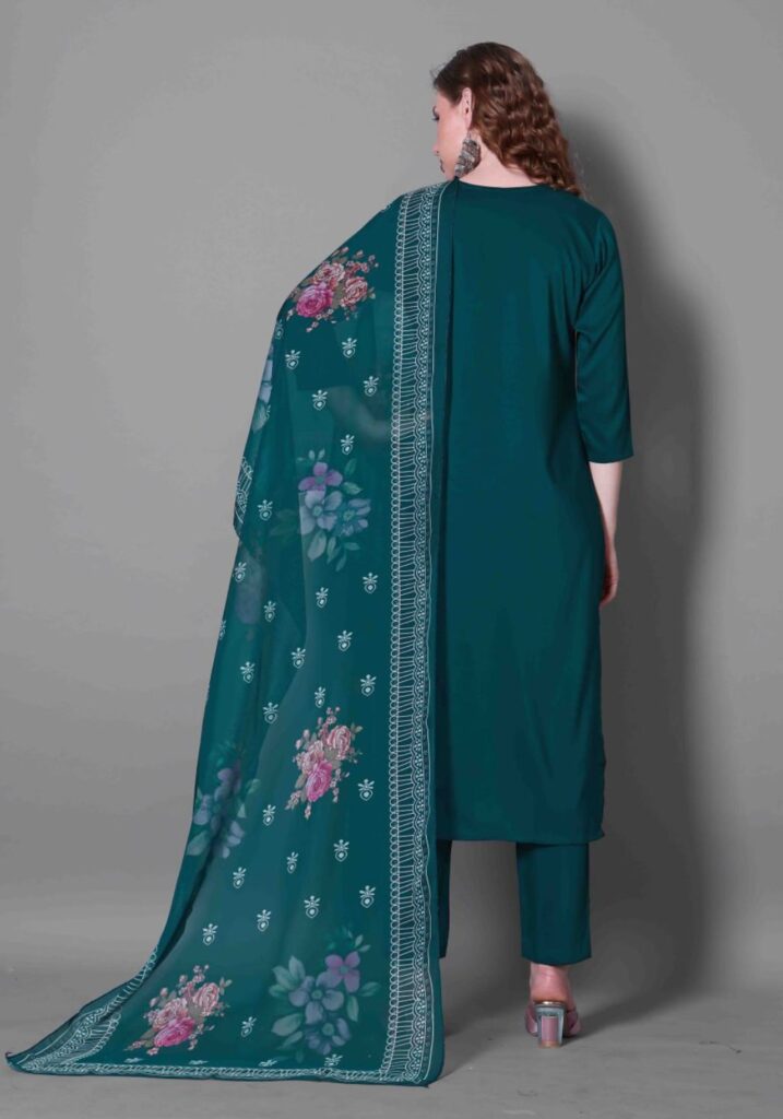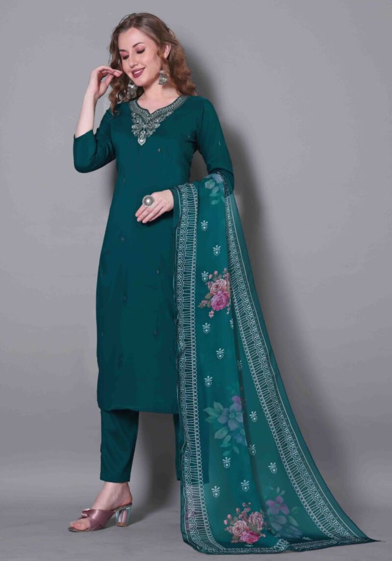 Fabric Detail | Kurta Fabric :- Silk Blend | Bottom Fabric :- Silk Blend |Dupatta Fabric :- Organza Sleeve |Length :- Three-Quarter Sleeve |Pattern :- Embroidered |Liner:- Micro |