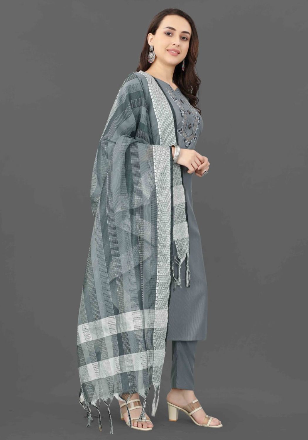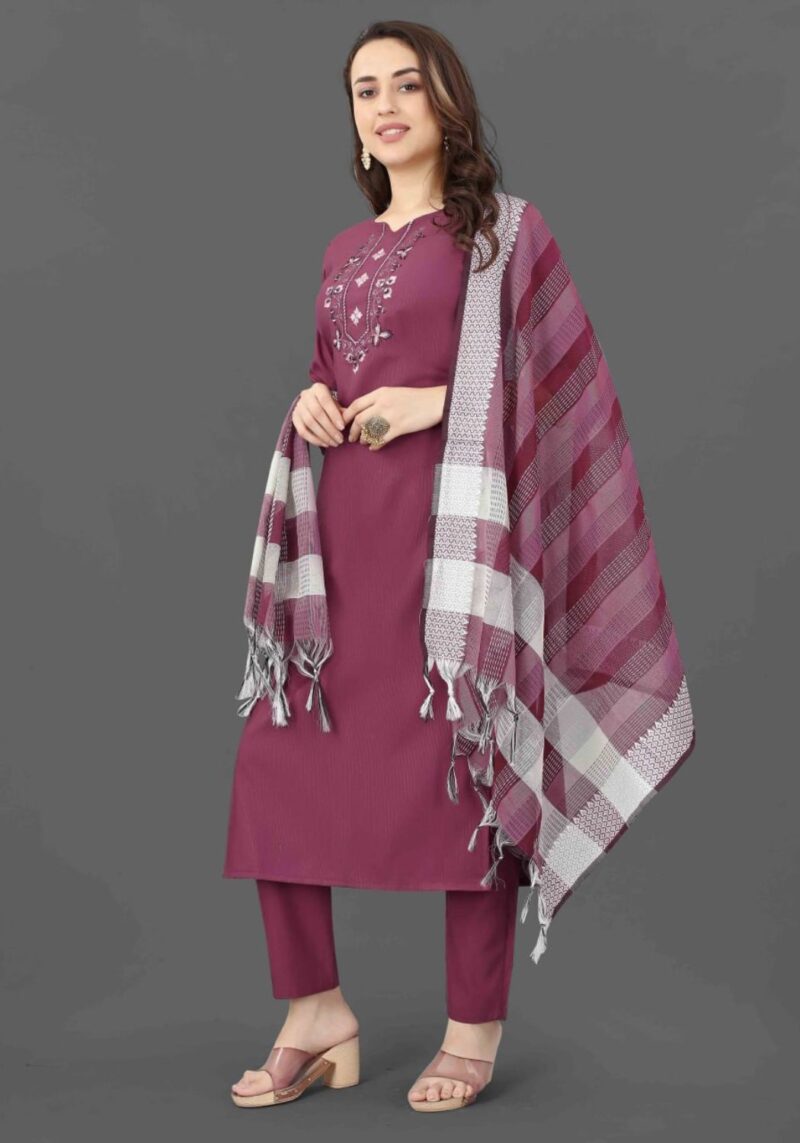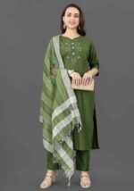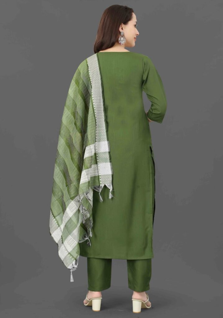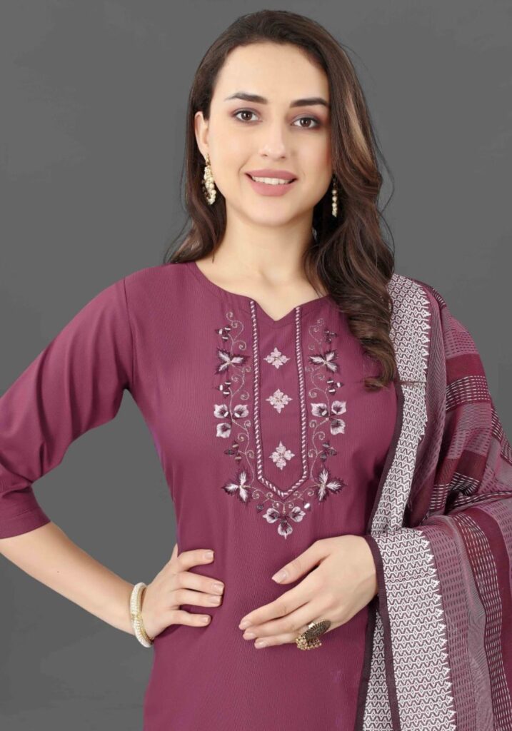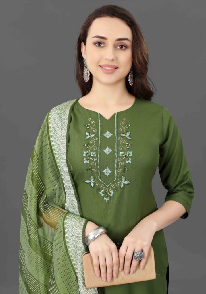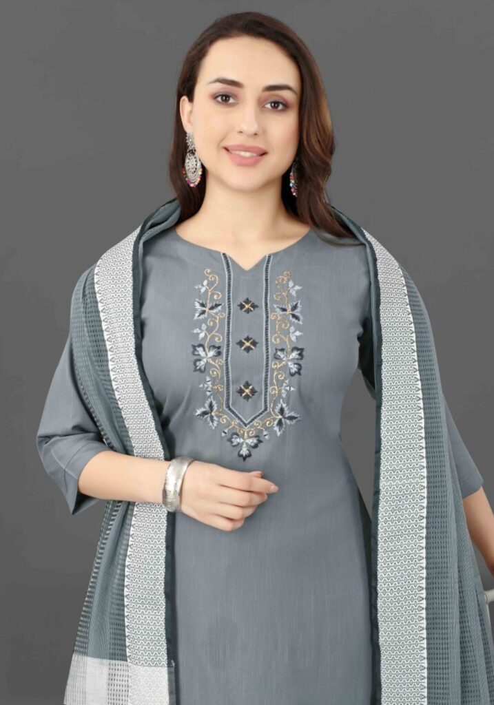 Fabric Detail | Kurta Fabric :- Cotton Blend Bottom Fabric :- Cotton Blend | Dupatta Fabric :- Cotton Blend Sleeve | Length – Three-Quarter Sleeve | Pattern :- Mirror Work |