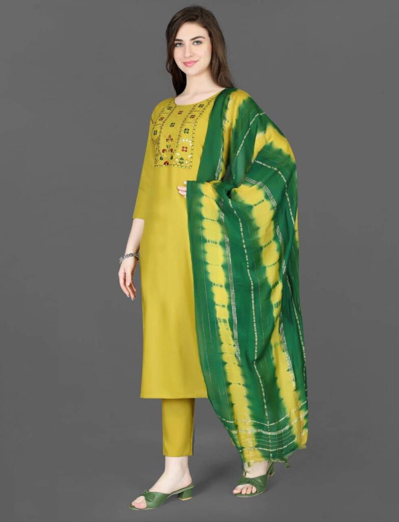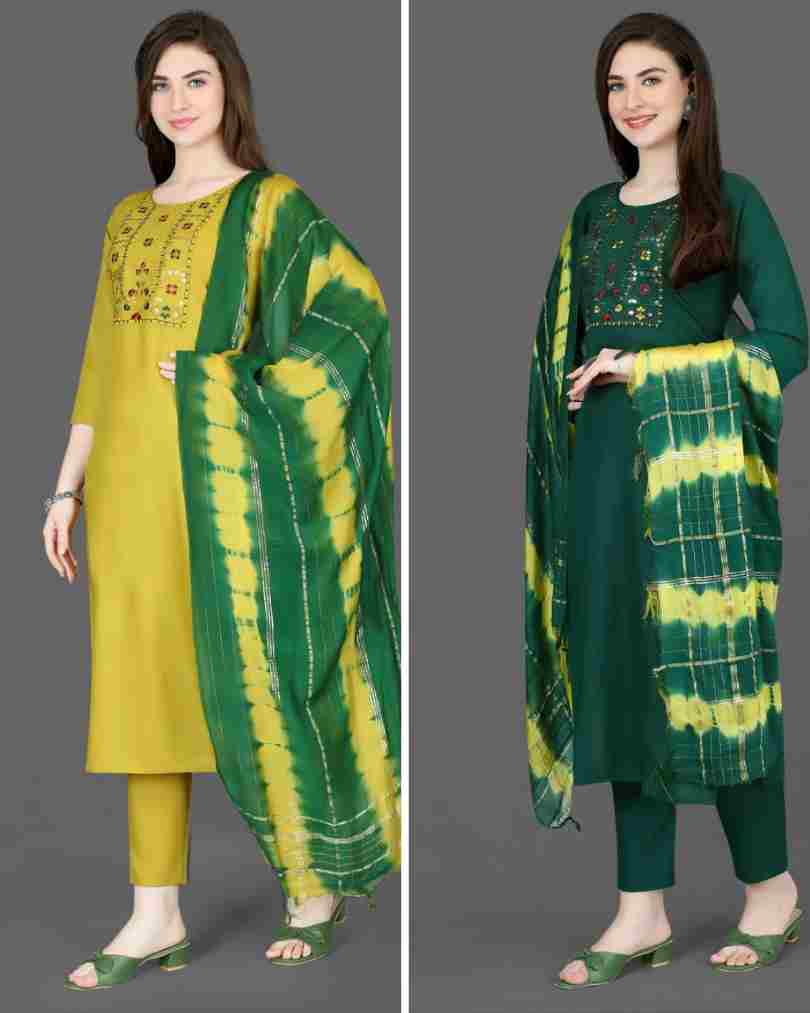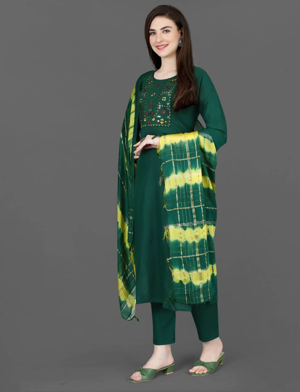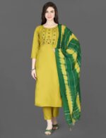 Fabric Type | Kurti :Cotton Blend , Sleeve Length : Three-Quarter , Length :46 Inch Bottom :Cotton Blend , Length :38 inch Dupatta : Chanderi |