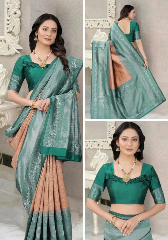Orange Green Art Silk Saree Collection Full Catalog Available At Wholesale Rate.