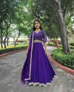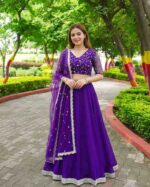 QRC-308 Satin Silk Lehenga Choli with cutwork border