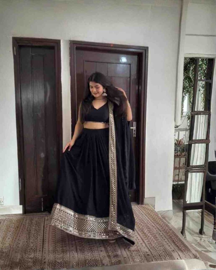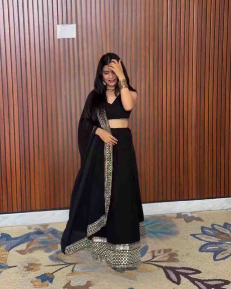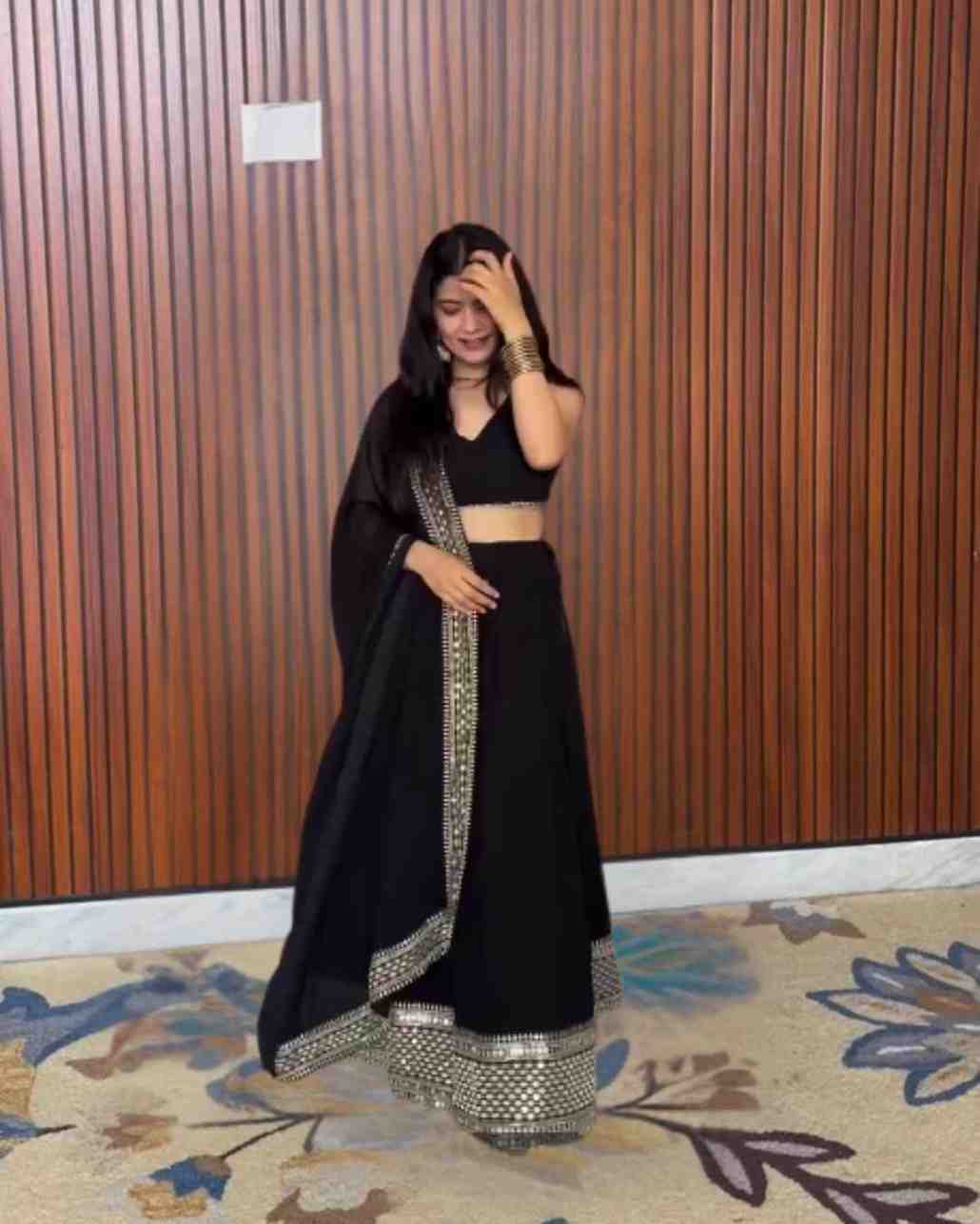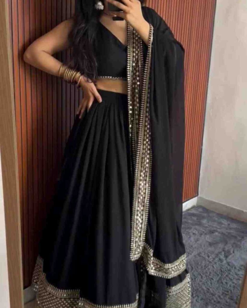 QRC-337 Georgette Lehenga Choli With Sequence Rivet Moti Work