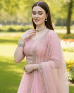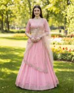 QRC-326 Satin Lehenga choli with Hotfixing And Mirror Work