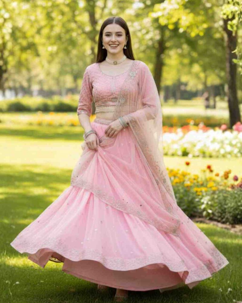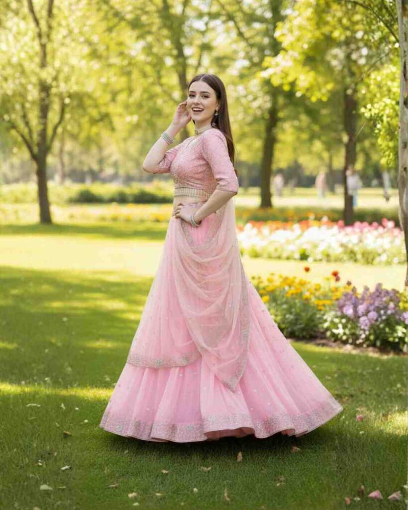 Fabric Type | Choli:Faux Georgette , Inner: Micro Lehenga: Faux Georgette , Inner: Micro , Type:Semi Stitch With 3.5 Meter Canvas Patta With Cancan Dupatta: Butterfly Net With Four Side Fancy lace Border ,Length :2.2 meter |