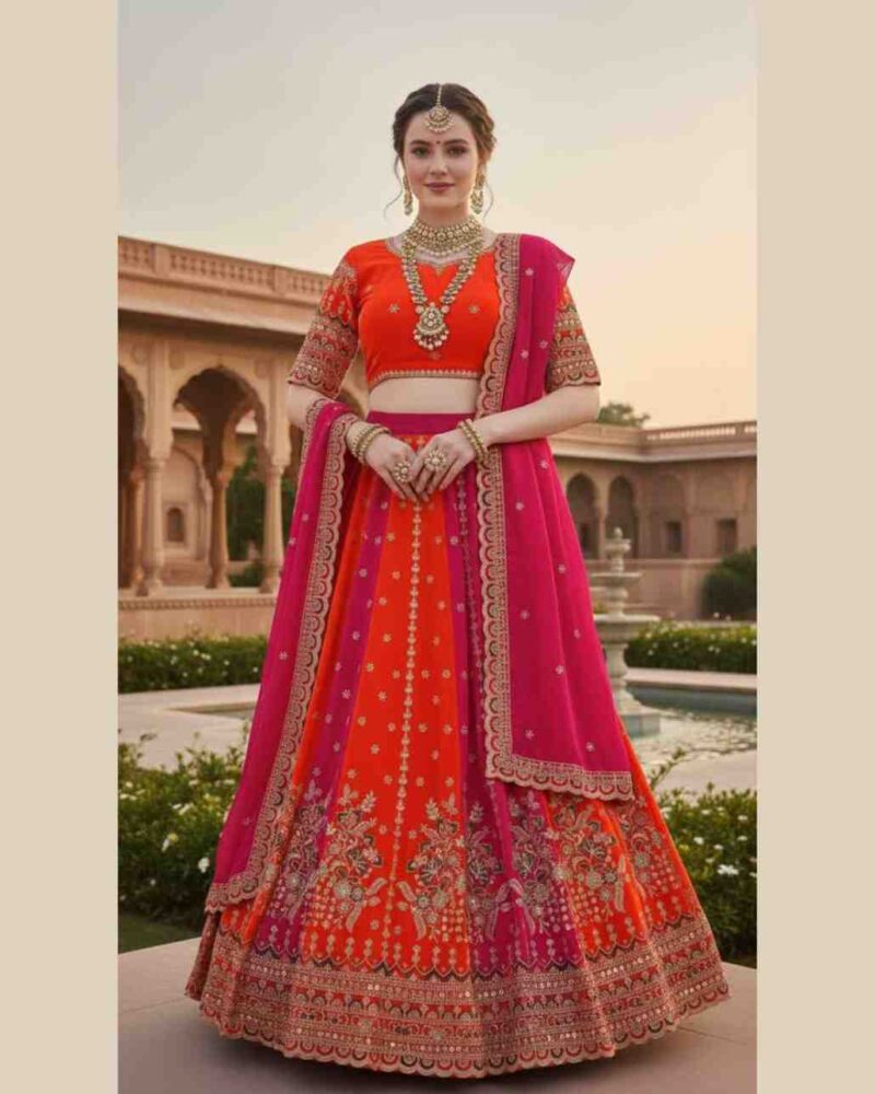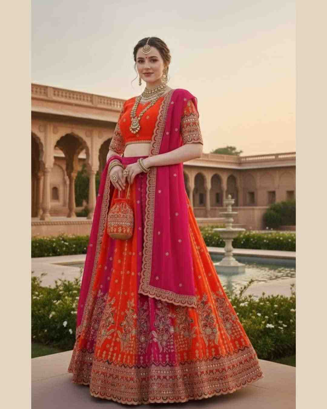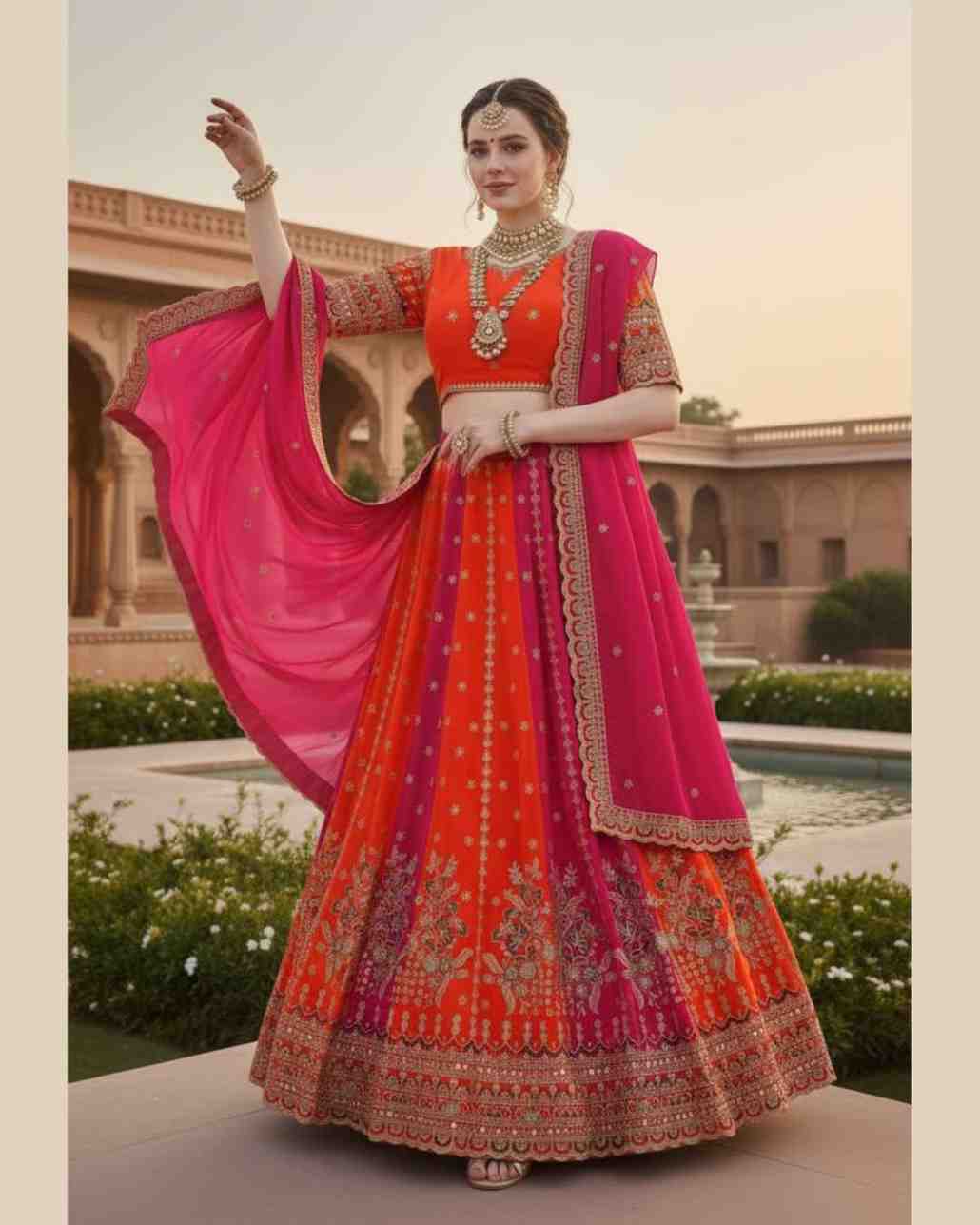 QRC-378 Faux Georgette Lehenga Choli With Thread Work Collection Full Catalog Available At Wholesale Rate.