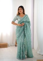 KD-586 Twill Net Saree with Thread & Sequin Work