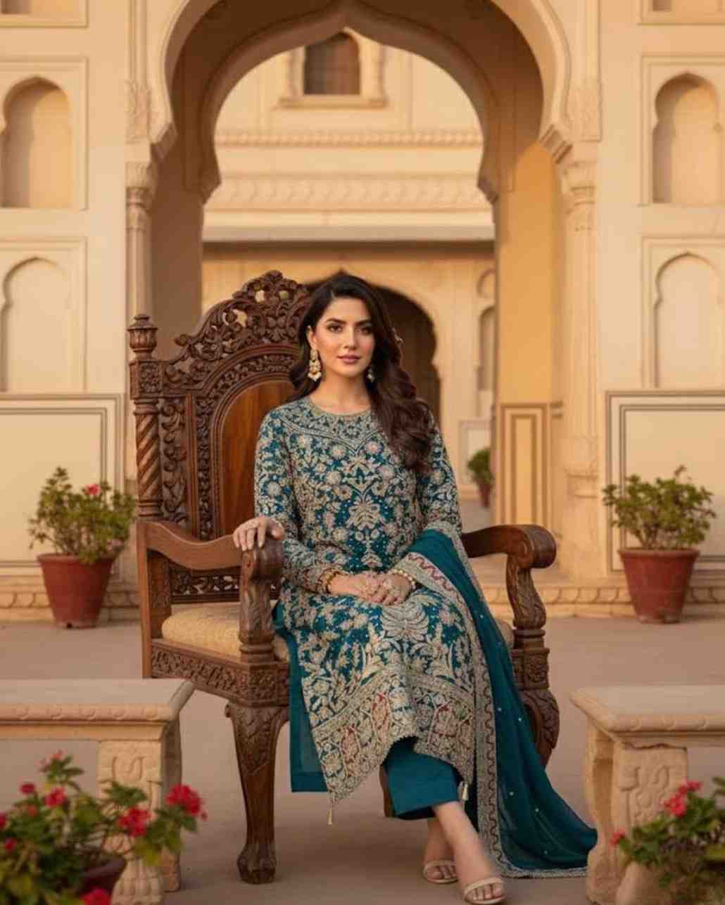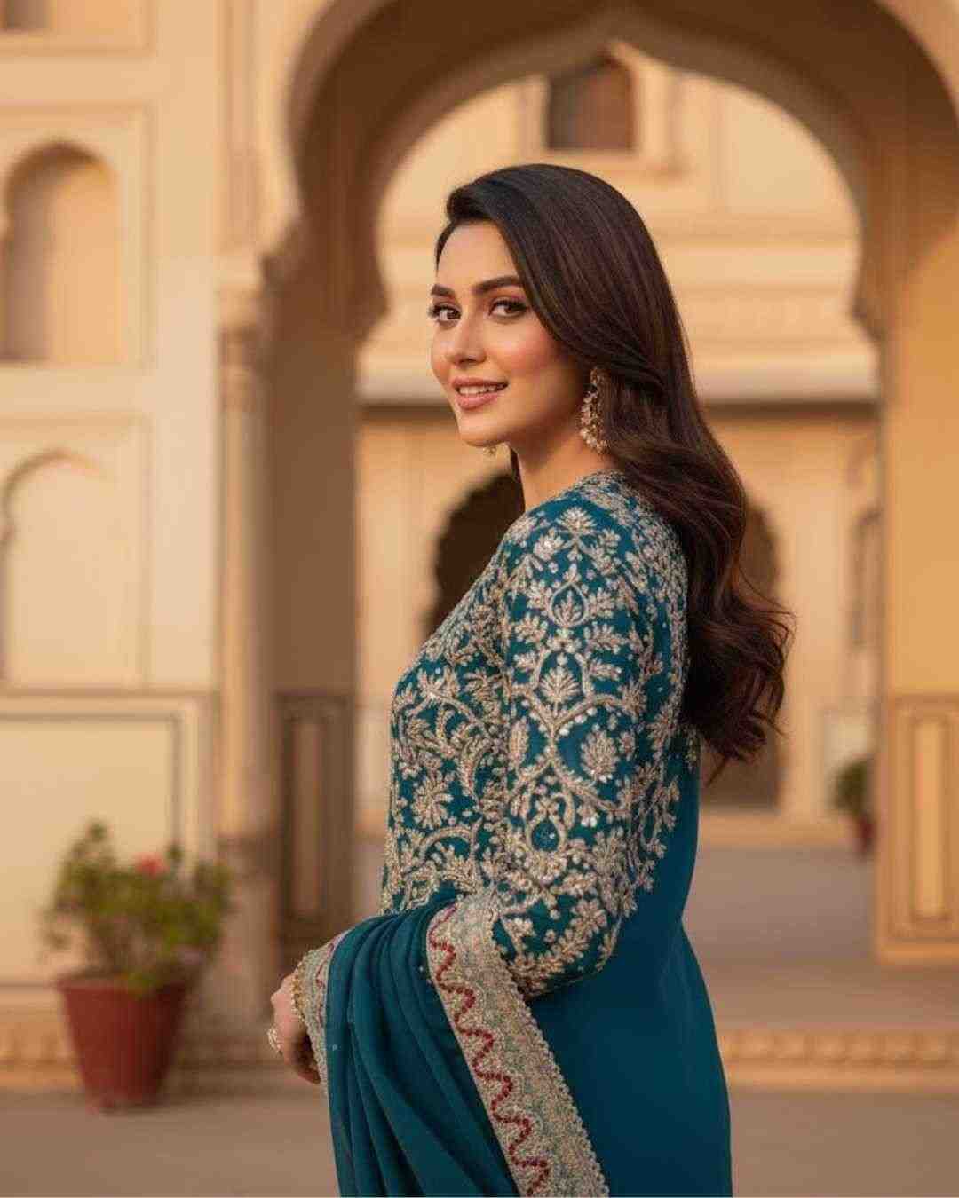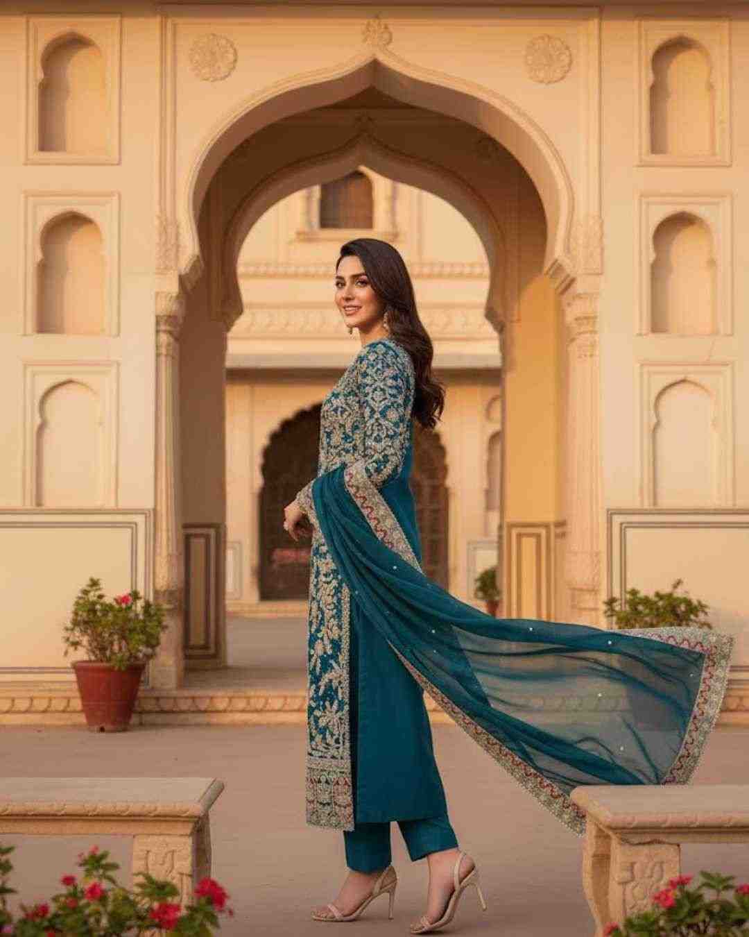 Fabric Type | *Top Fabric* : Heavy Faux Georgette With Heavy Embroidery Work With Diamond Handwork With Full Sleeve *Top Inner* : Heavy Micro Cotton *Top Length* : 46-47 Inch *Top Size*. : *(FULLY STITCHED READY TO WEAR)* ,Palazzo :- *Palazzo Fabrics* :Heavy Faux Georgette With Heavy Embroidery Work Lace Border *(Full stitched)* *Palazzo Length*:40-41 Inch *(fully stitched)*, Dupatta:- *Dupatta Fabric* :Heavy Faux Georgette With Heavy Embroidery Work Lace Border. |