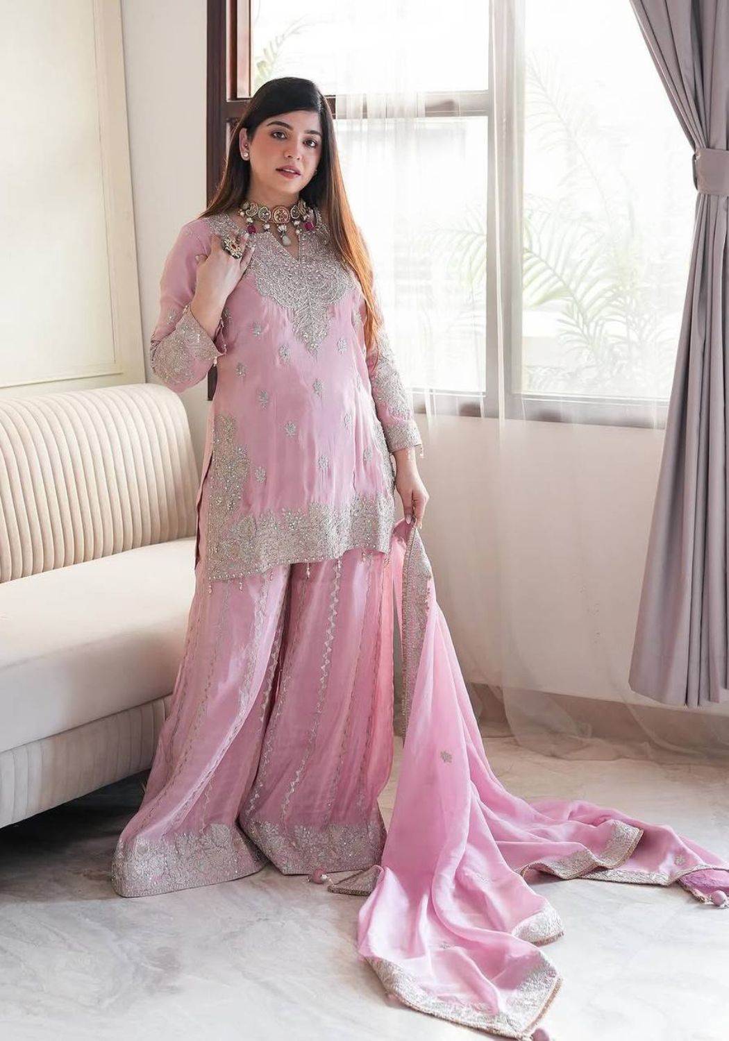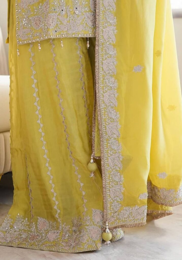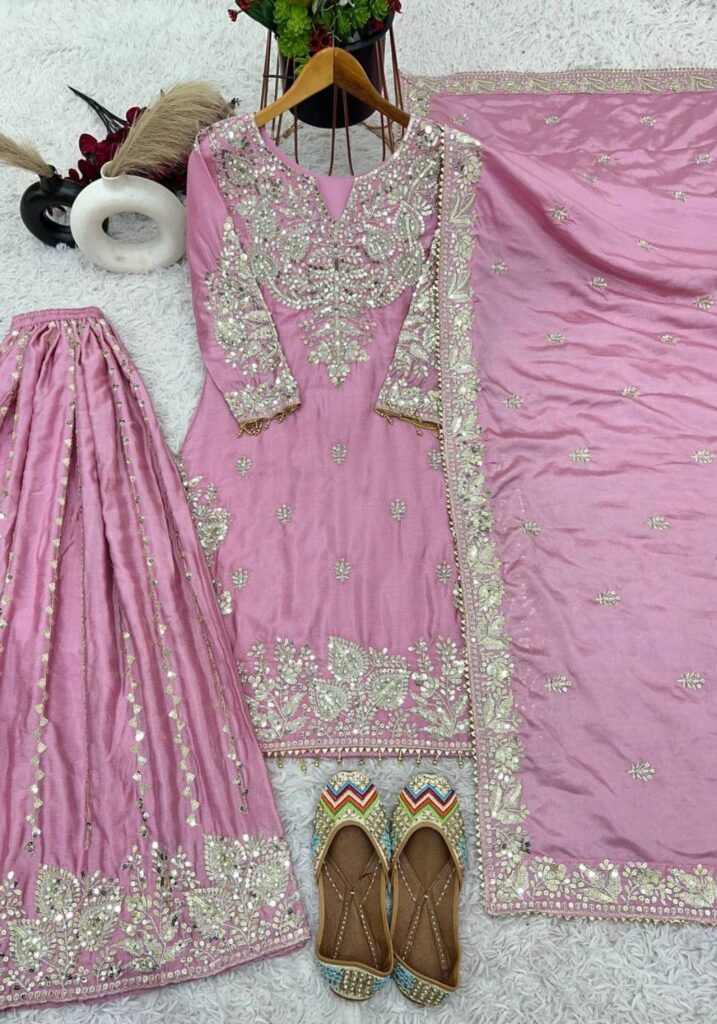 Fabric Type | Top:- *Top Fabric* : Heavy Chinon Silk With Heavy Embroidery Sequence Work with Rivet Moti Work with Full Sleeve*Top Inner* :Heavy Micro Cotton *Top Length* : 38-39 Inch, Ghaghara:-*Gharara Fabrics* :Heavy Chinon Silk With Heavy Embroidery Sequence Work with Rivet Moti Work*Gharara inner* :Heavy Micro Cotton *(Full stitched)* ,Dupatta:-*Dupatta Fabric* :Heavy Chinon Silk With Heavy Embroidery Sequence Work and Lace Border |
