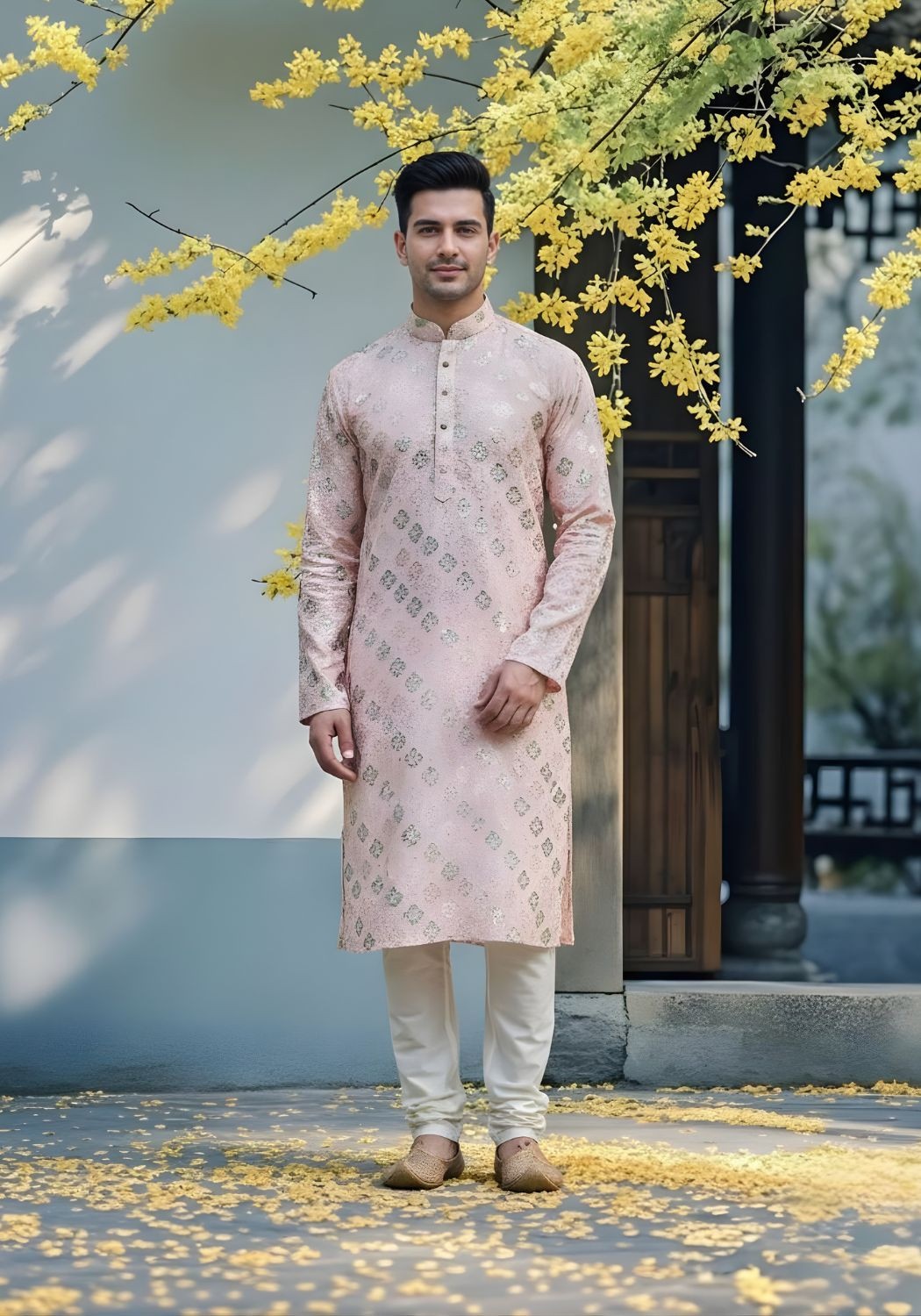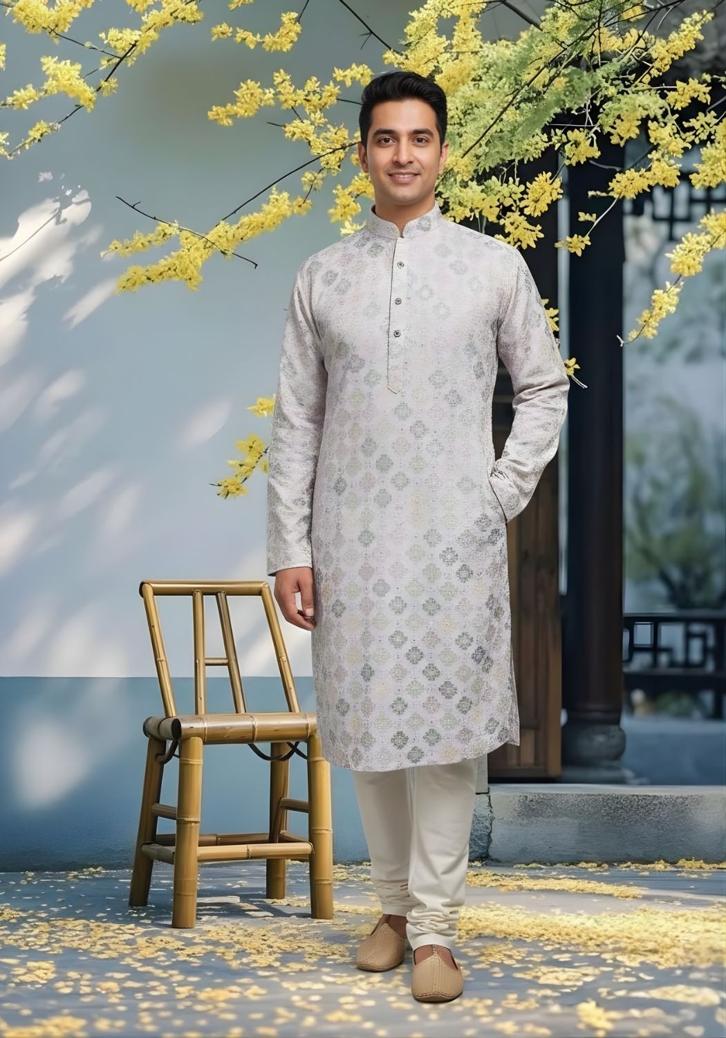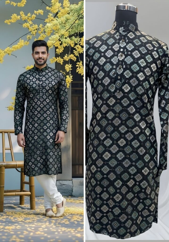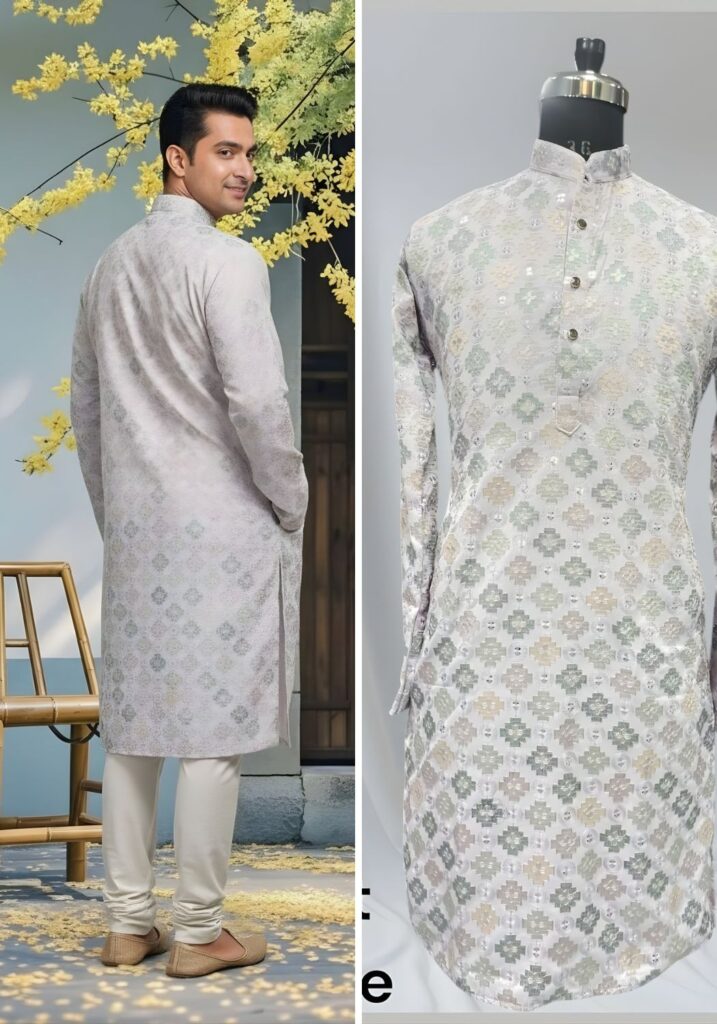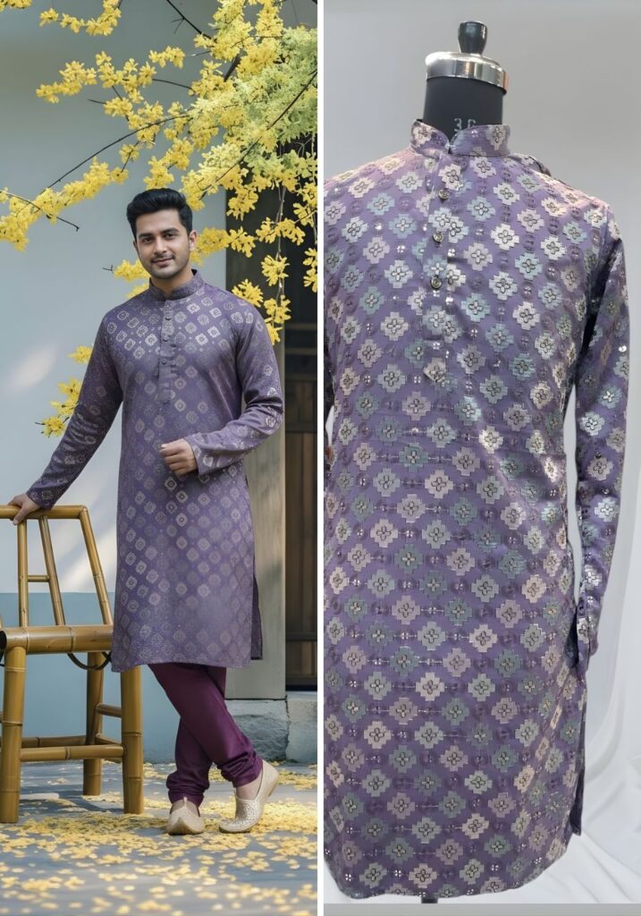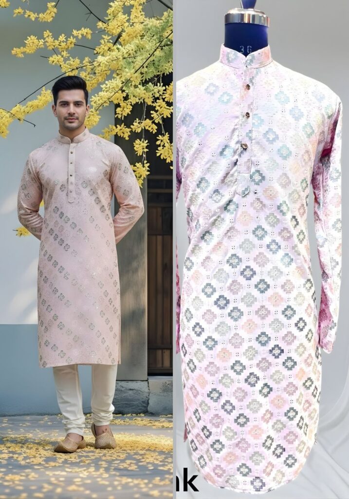 Cotton Dhaga Roman Silk Men Kurta with Stylish Sequins