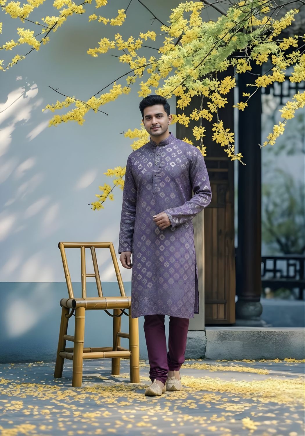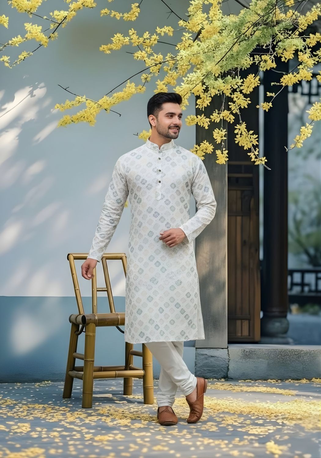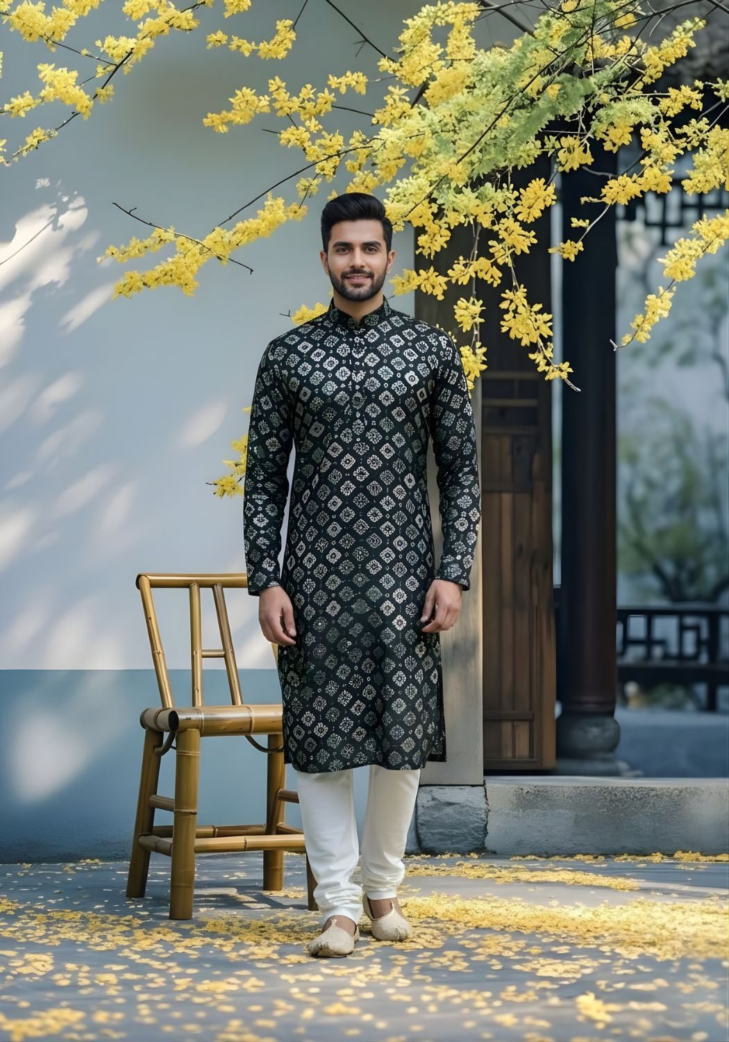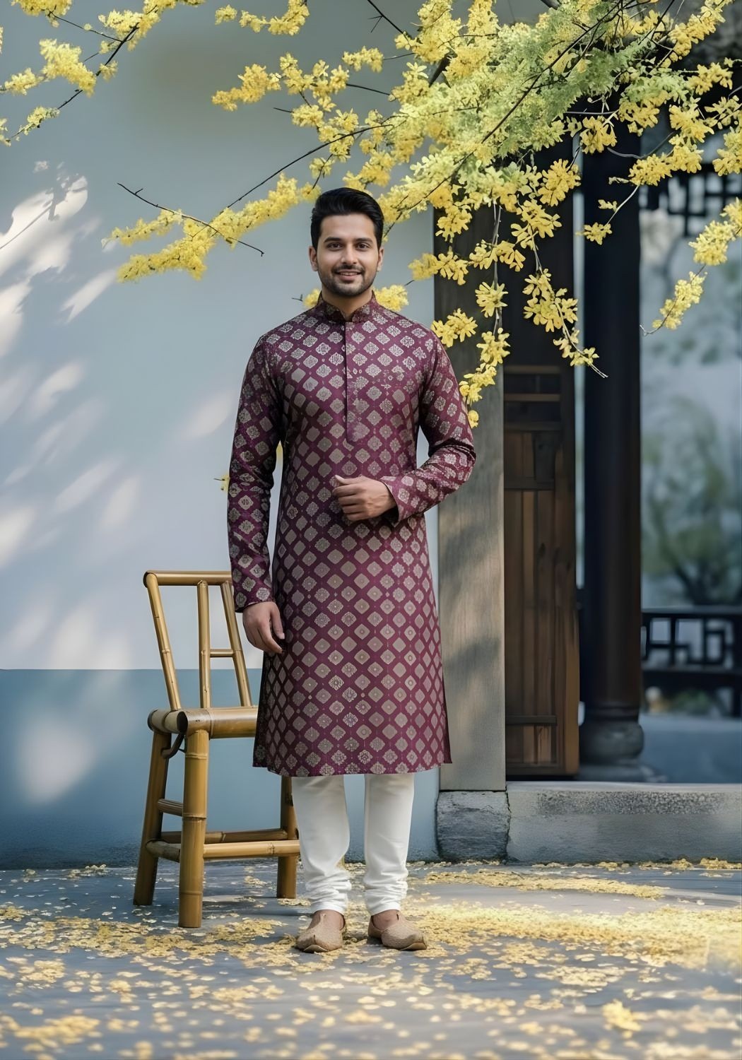 Cotton Dhaga Roman Silk Men Kurta with Stylish Sequins