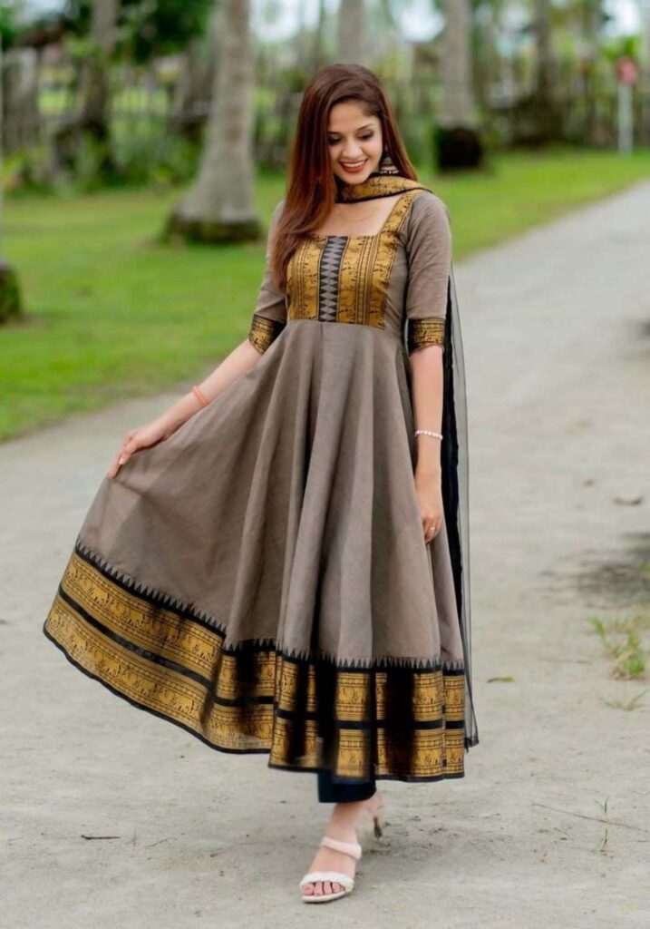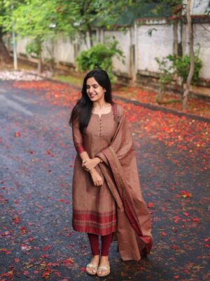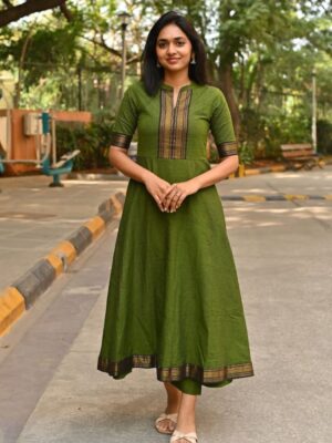 Be the first to review “Suhani Flared Banana Silk Anarkali Suit Set”