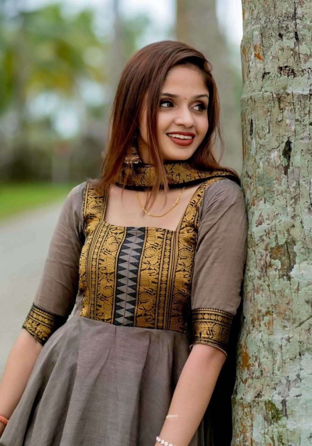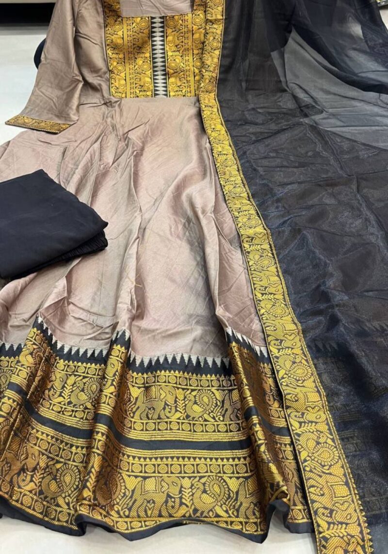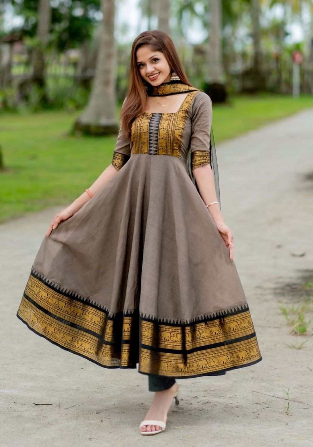 Suhani Flared Banana Silk Anarkali Suit Set Collection Full Catalog Available At Wholesale Rate.