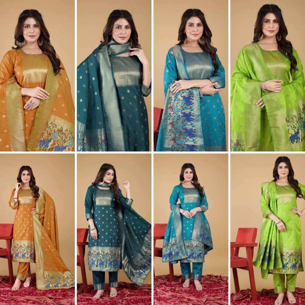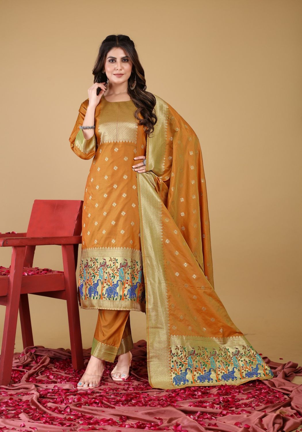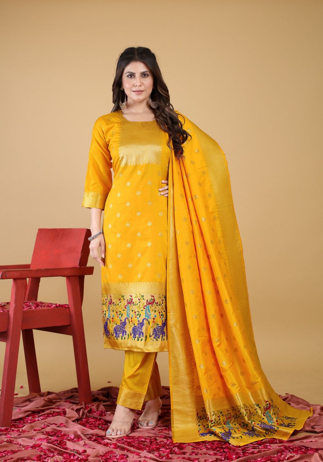 Kamal Paithani Unstitched Pure Silk Suit 3-Piece