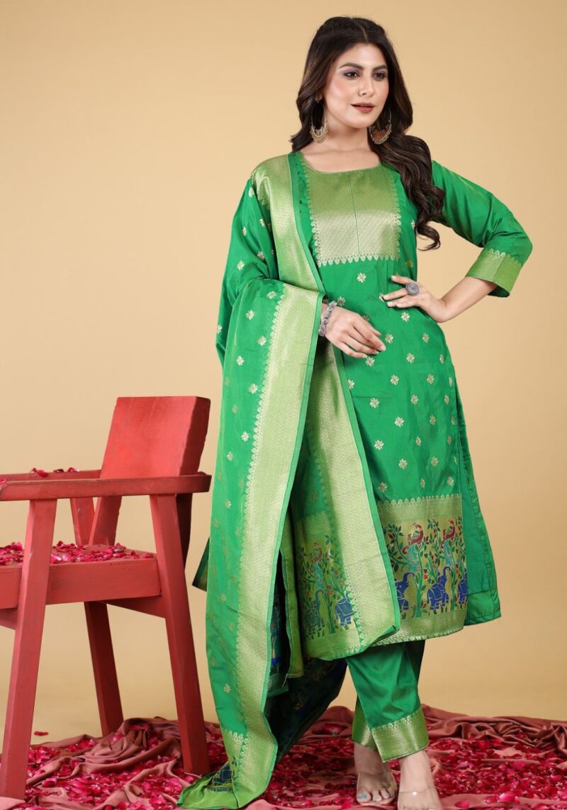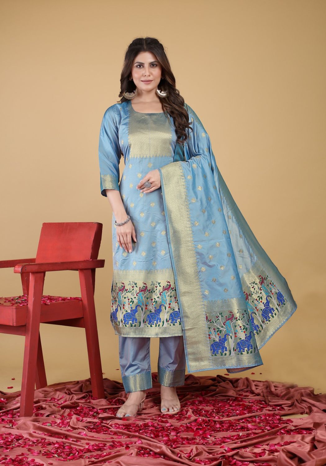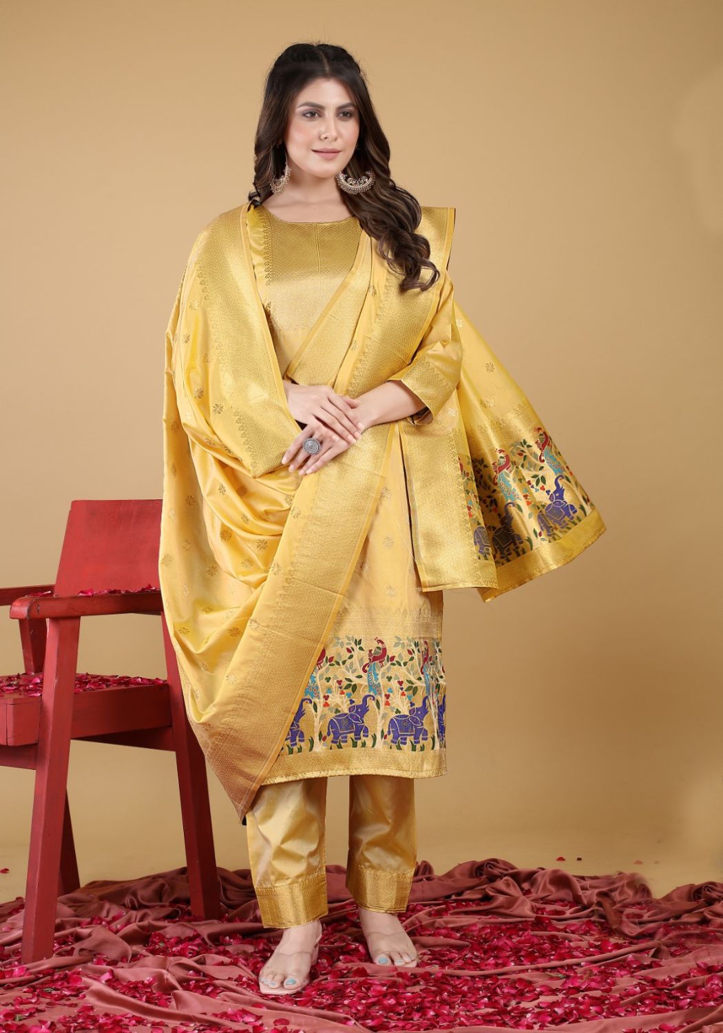 Kamal Paithani Unstitched Pure Silk Suit 3-Piece
