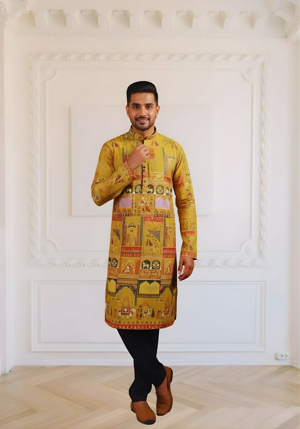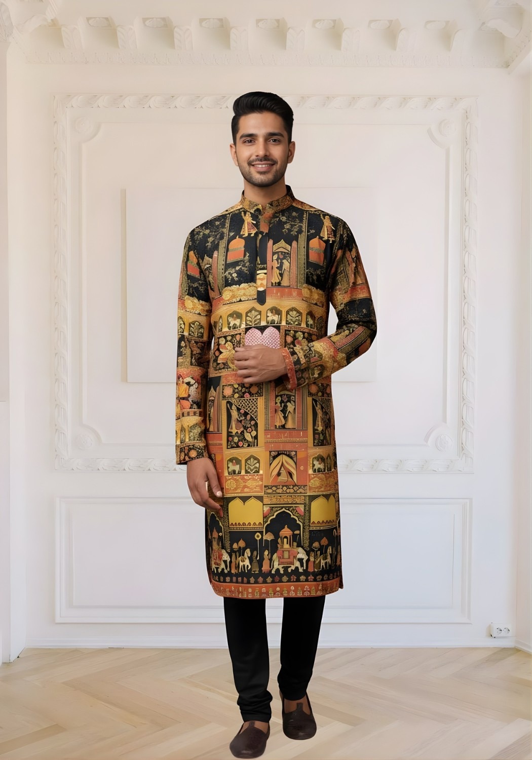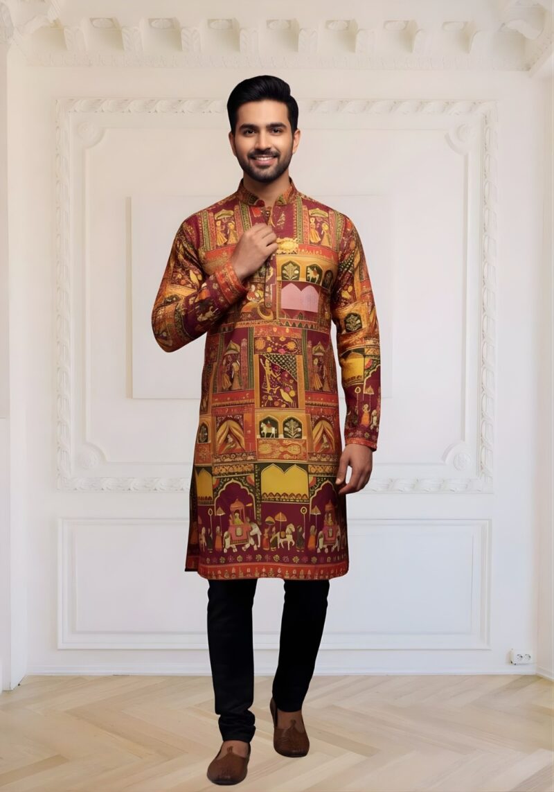 Trending Digital Position Print Men Kurta in Reyon Sifli Collection Full Catalog Available At Wholesale Rate.