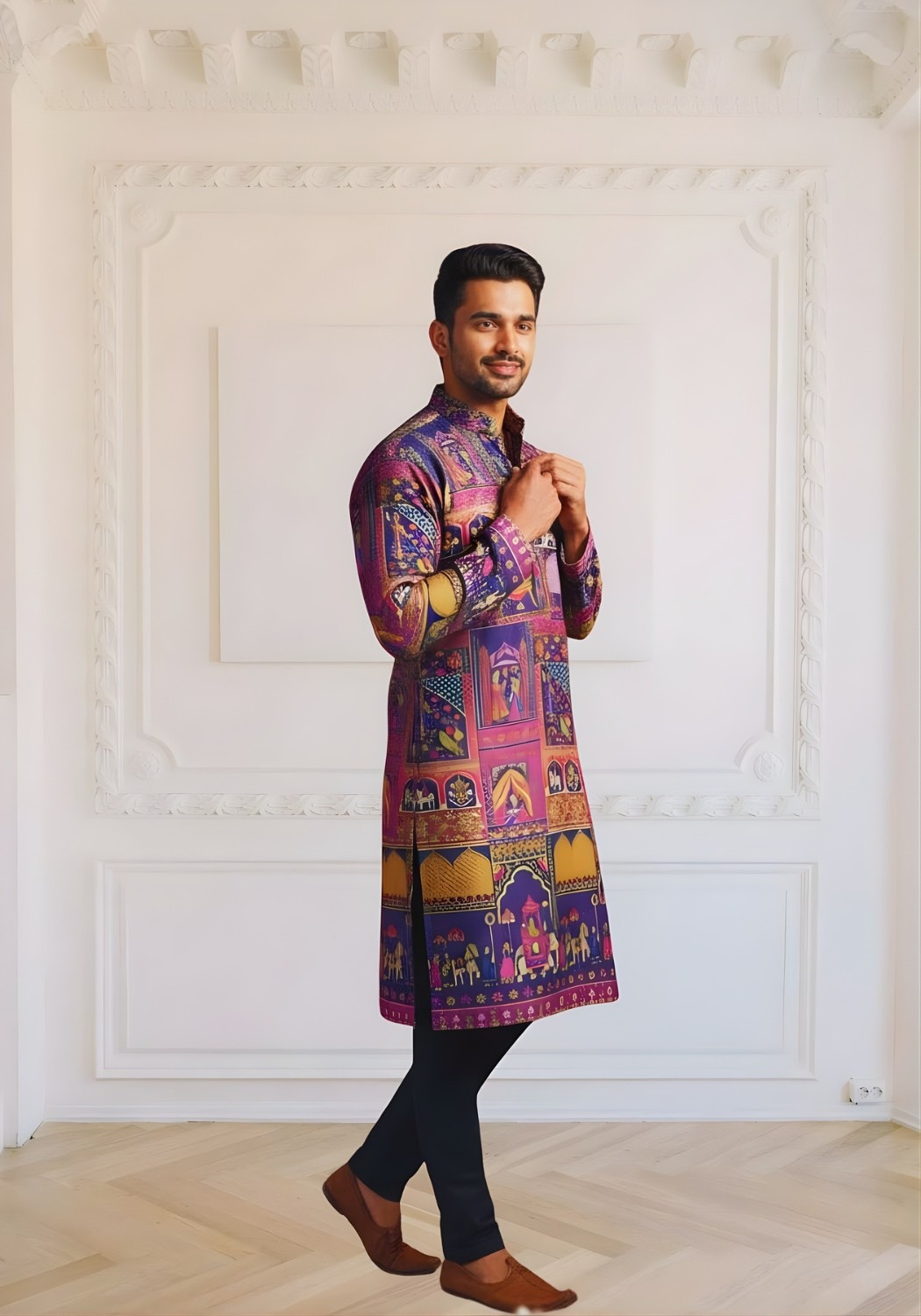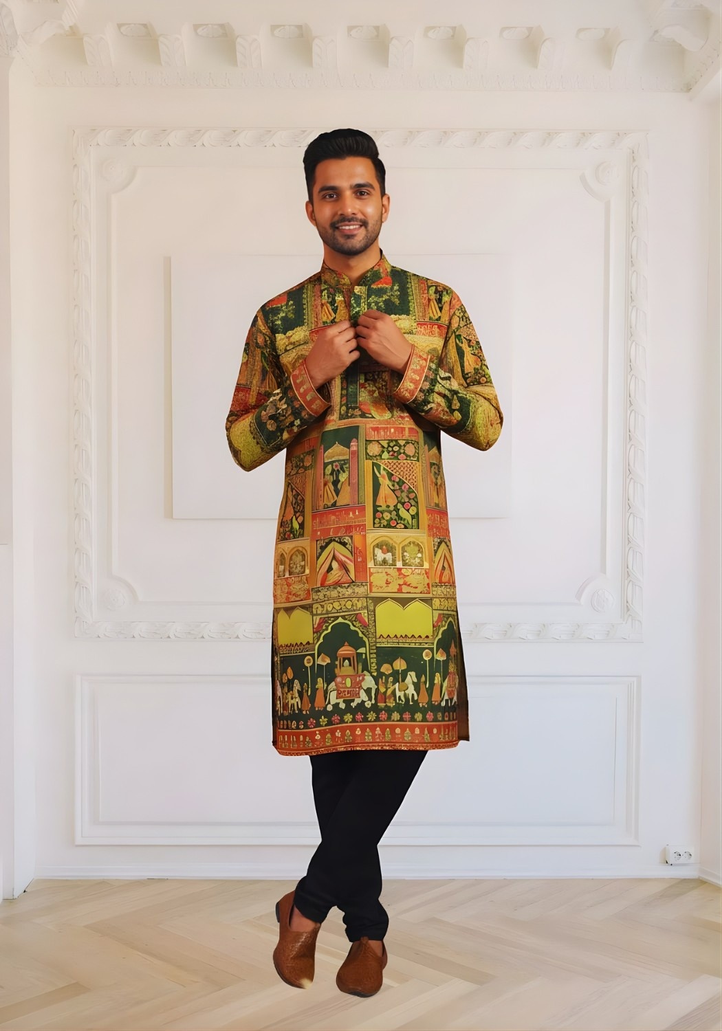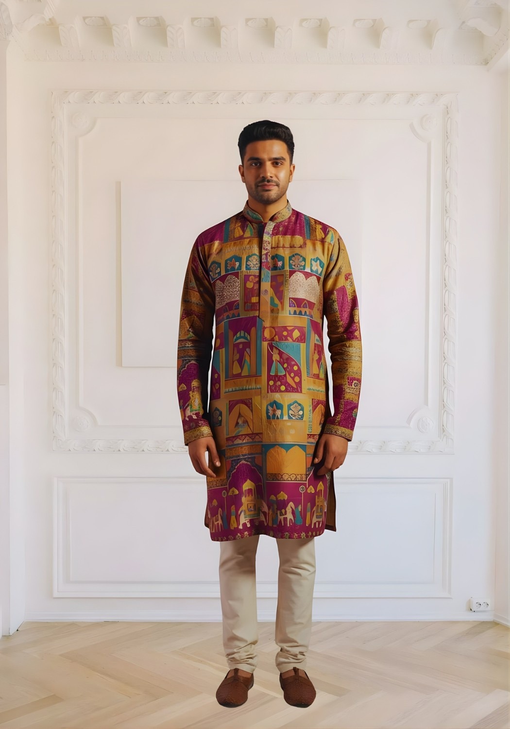 Trending Digital Position Print Men Kurta in Reyon Sifli Collection Full Catalog Available At Wholesale Rate.