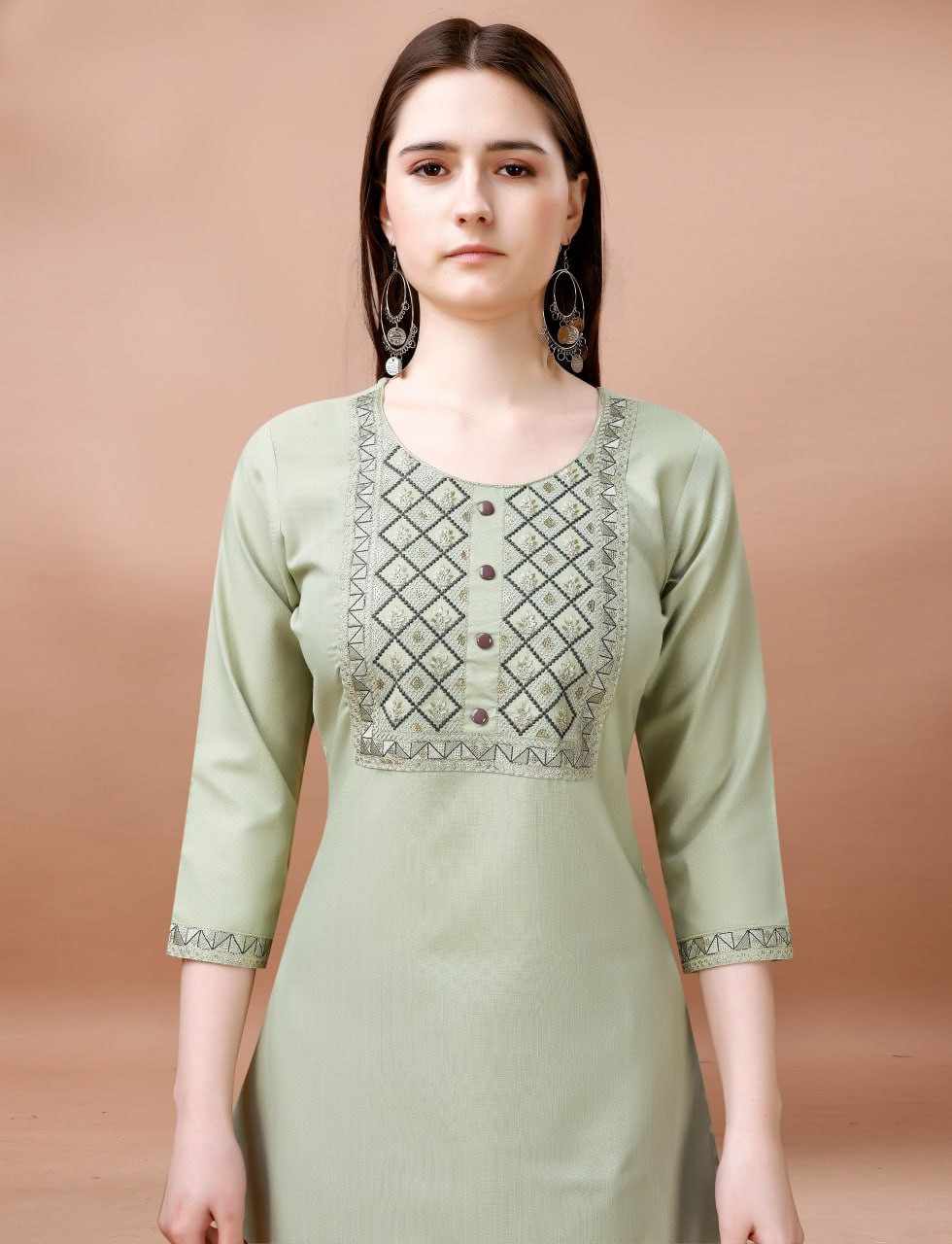 Bindiya Kurti Set In Cotton Blend Fabric With Mirror Work