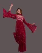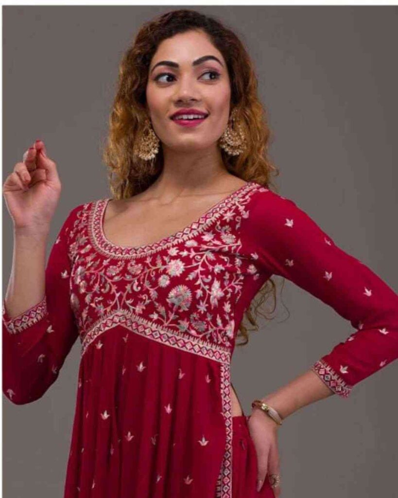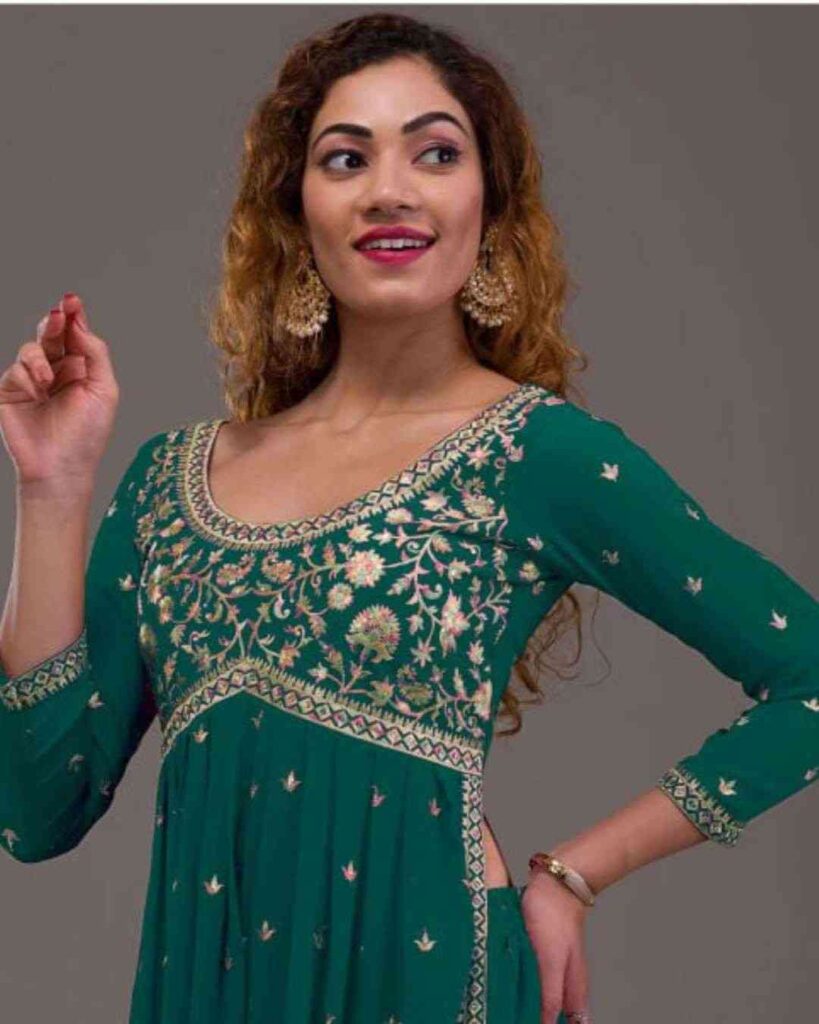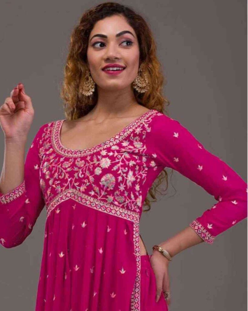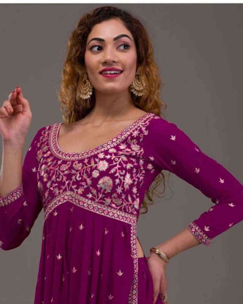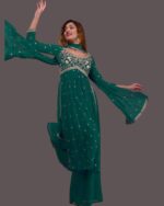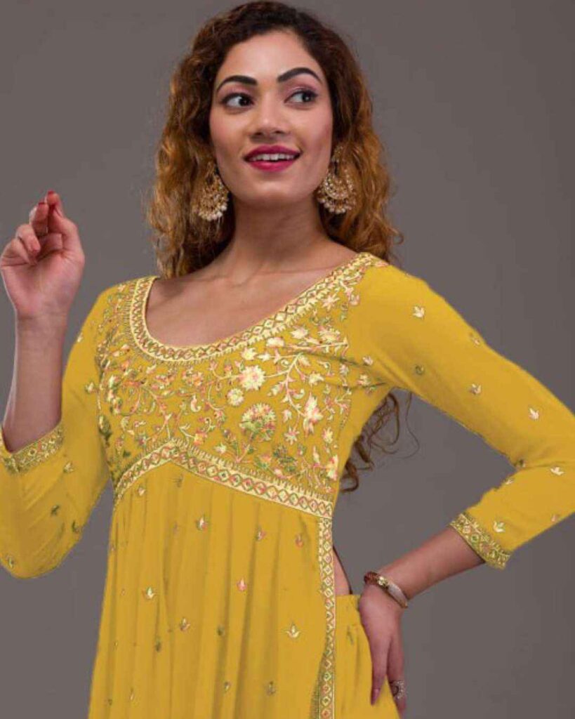 Fabric Type | Top: Heavy Georgette With Sequence Embroidery Work ,Sleeve:- Georgette With Sequence Embroidery Work ,Inner: Crap , Length: 52 Inch Bottom: Heavy Georgette With Crap Inner , Size :Fully Stitched 44 inch Max , length:42 Inch Dupatta: Heavy Georgette With Sequences Embroidery Work and 4 Side Lace , Type: Fully Stitched WASH:- First Time Dry Clean |