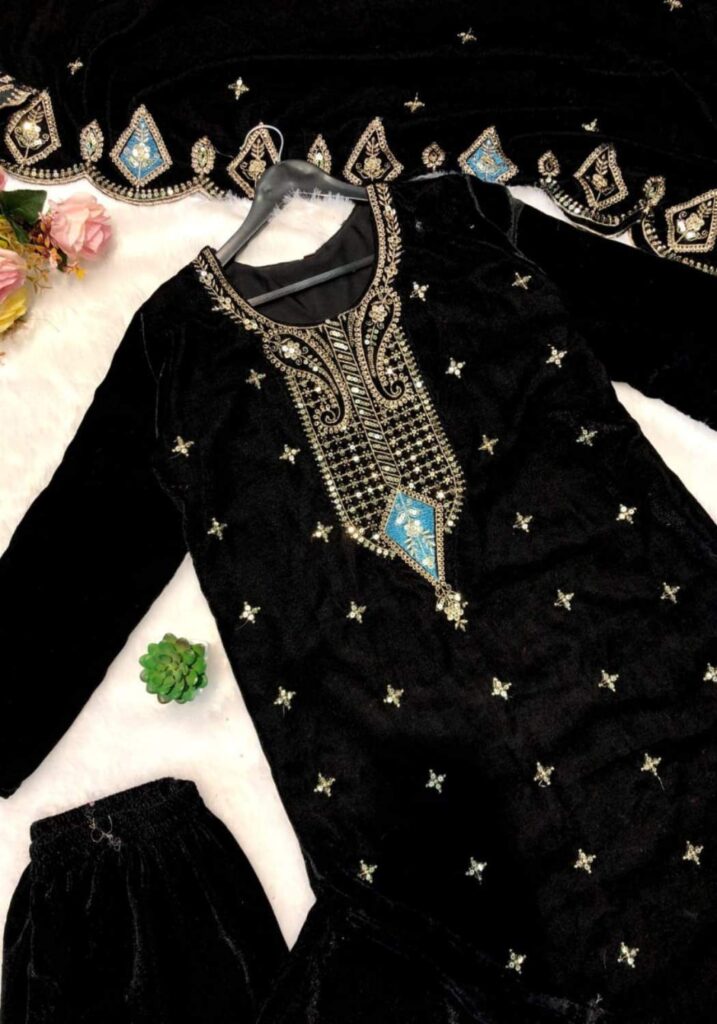 Fabric Type | Top: Heavy Viscose Velvet With Embroidery 5mm Sequence Work |Top Inner:Heavy Micro | Top Length: 46-47Inch | Bottom: Heavy Vicose Velvet With Elastic Pant|Bottom length:40-41 Inch | Dupatta: Heavy Viscose Velvet With Embroidery 5mm Sequence With Side Border Cutting Work|Dupatta Length :- 2.25 Inch| Type: Fully Stitched |