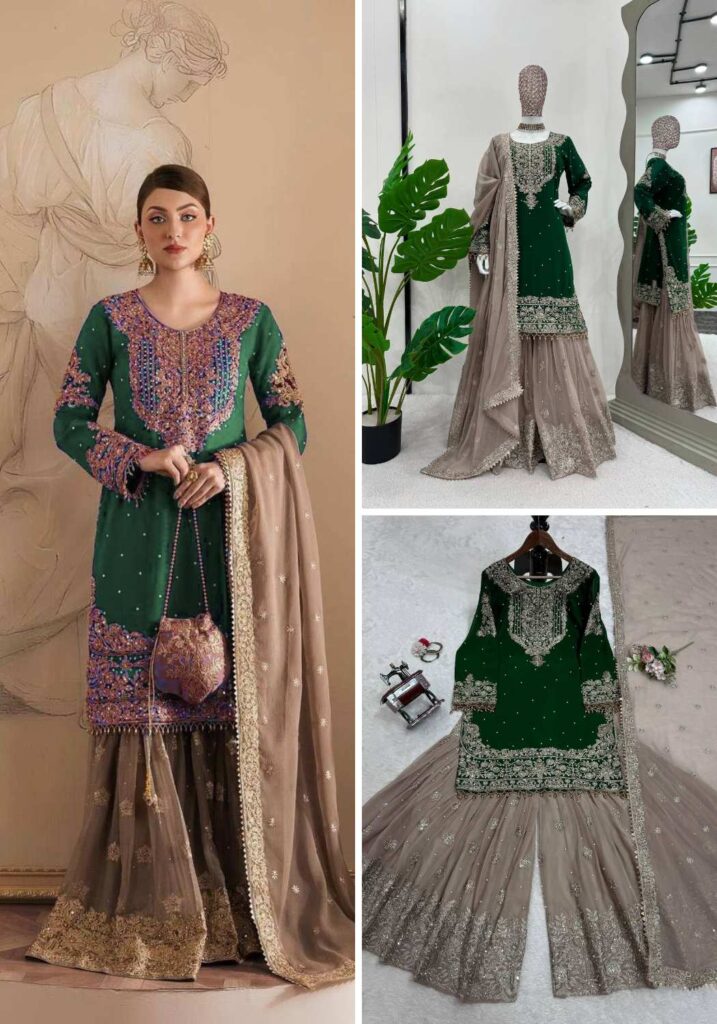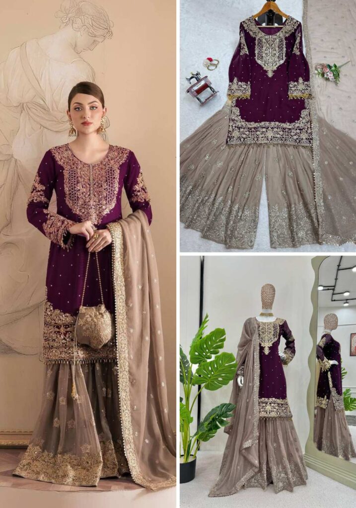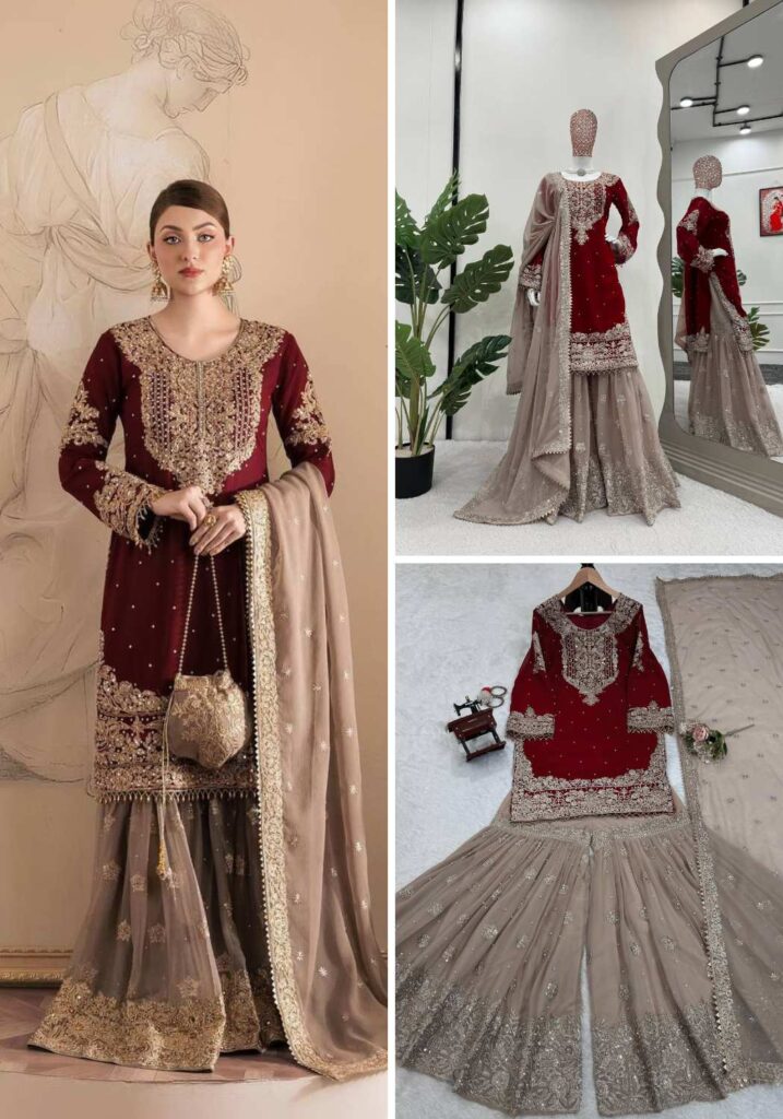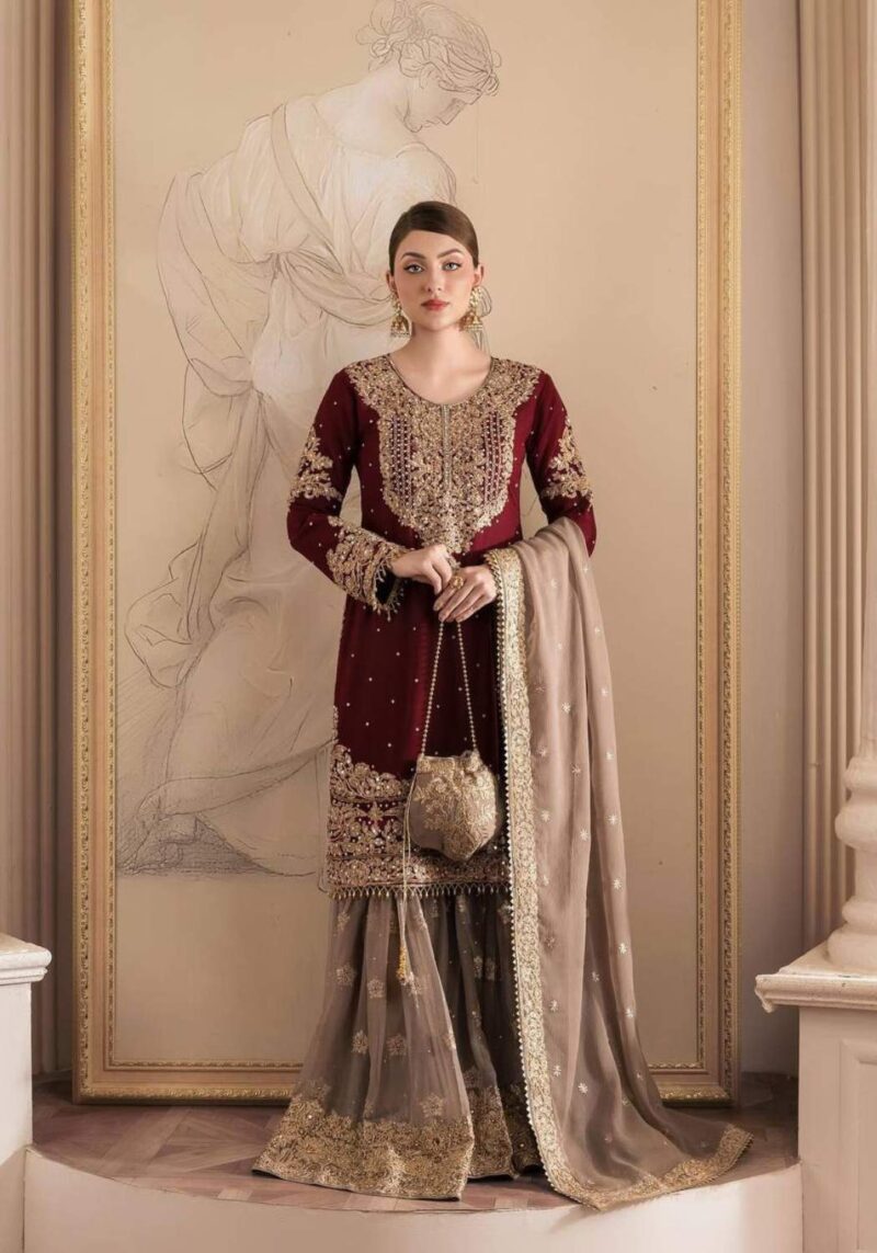YD-014 Pure Chinon Silk With Fancy Embroidery Sharara Dupatta