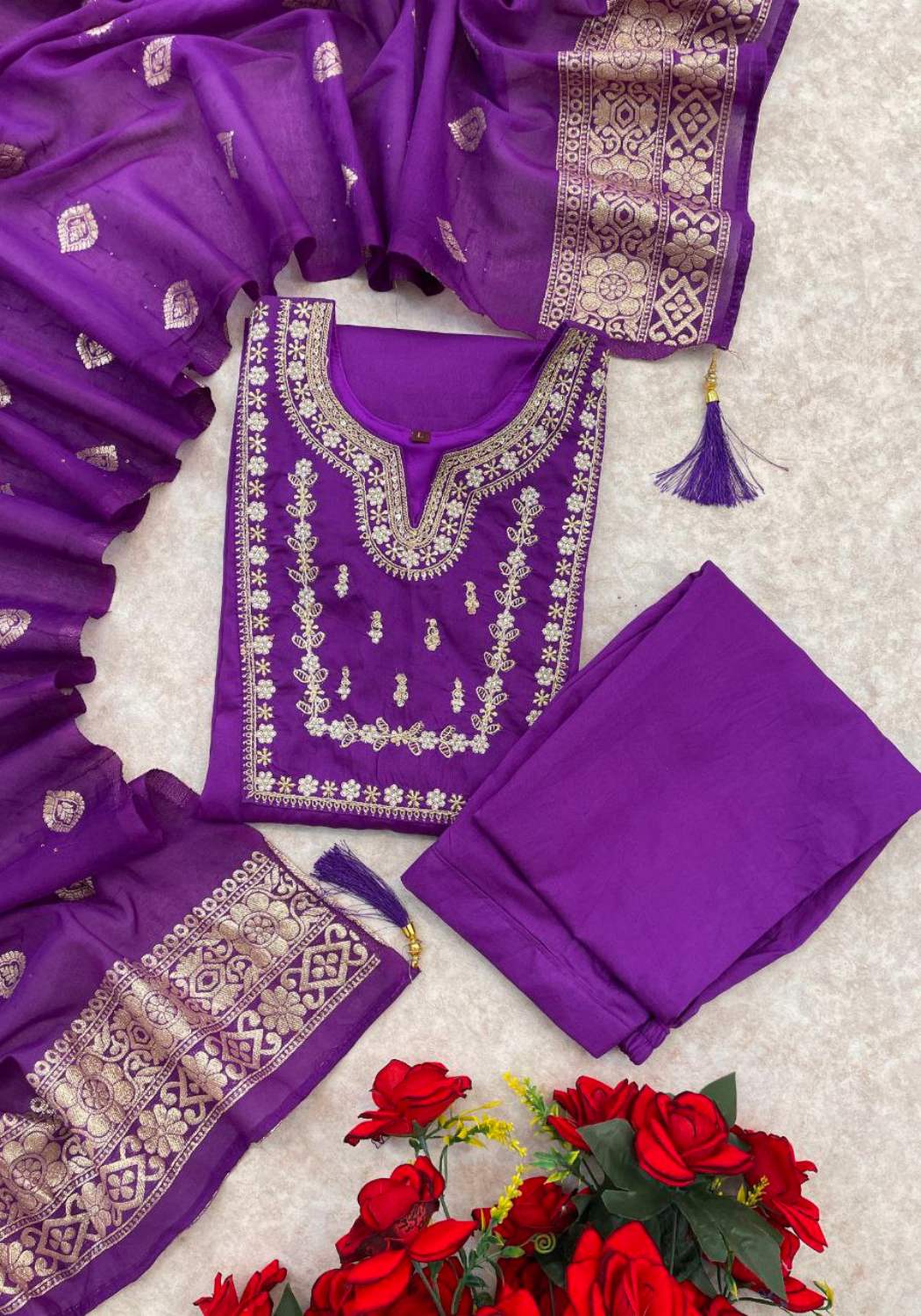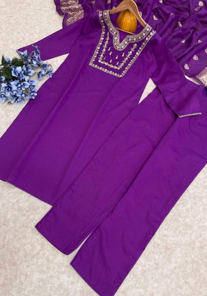 | Fabric Type | Top: Heavy Party Wear Heavy Viscose Chanderi Cotton With Embroidery Sequence Work With Full Sleeve , Inner: Heavy Micro Cotton , Length: 45-46 Inch Bottom: Heavy Viscose Chanderi Cotton With Elastic , length:40-41 Inch Dupatta: Heavy Banarasi Silk With Jacquard Work Type: Fully Stitched |