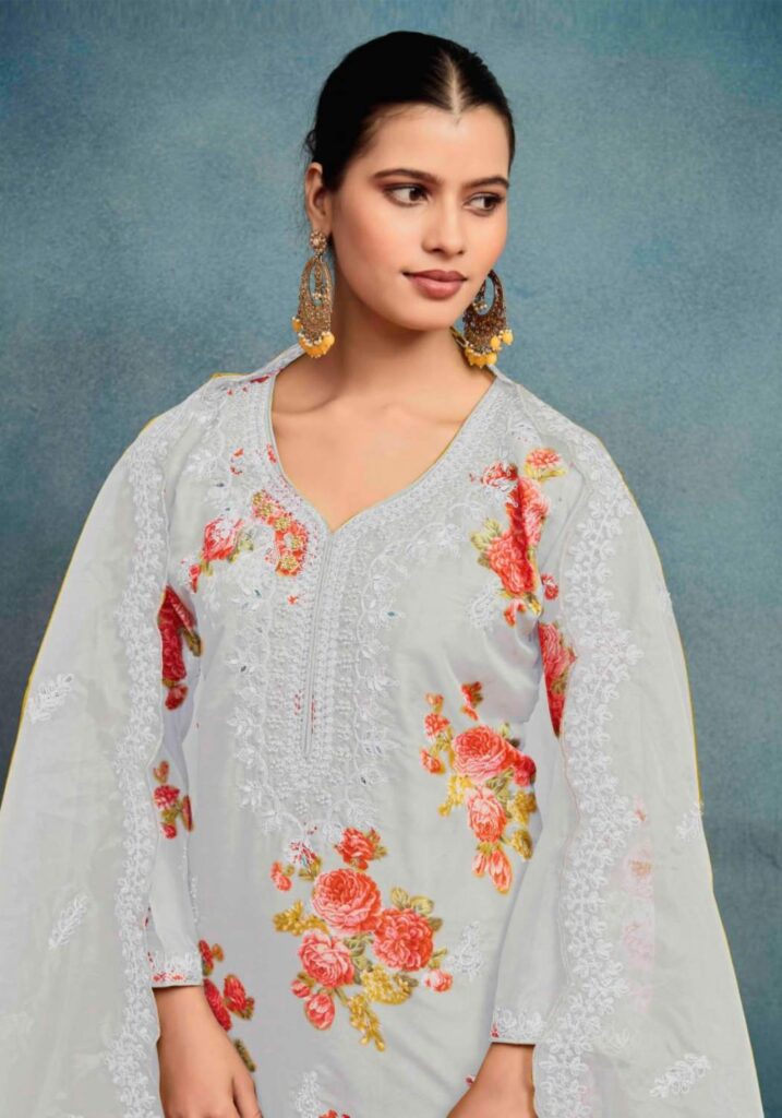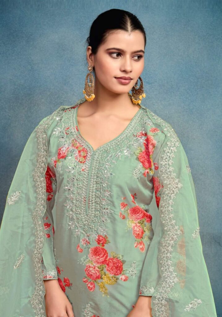 Fabric Type | Top: Heavy Tebby Silk With Digital Print and Embroidery Sequence Work With Motti Work , Inner: Heavy Cotton , Length: 42 Inch Bottom: Heavy Micro Cotton With Elastic Dupatta: Heavy Tebby Silk With Embroidery Sequence., Type: Fully Stitched Wash : Dry Clean |